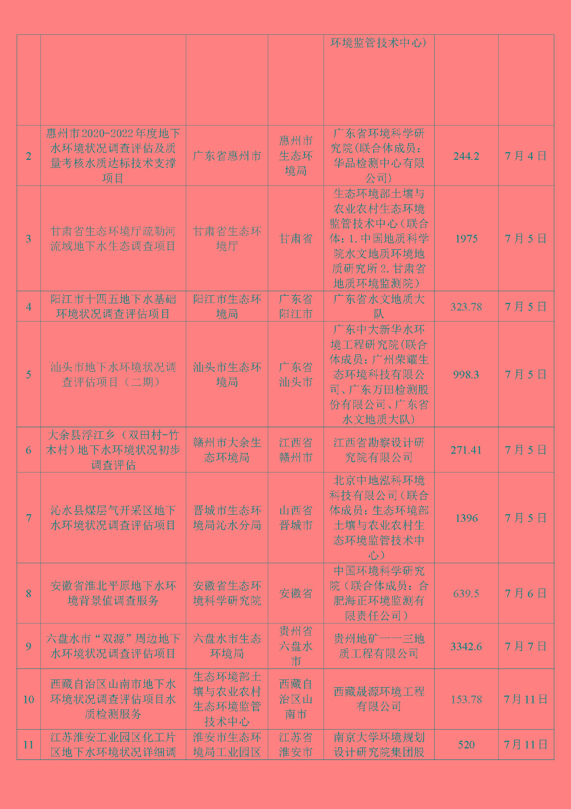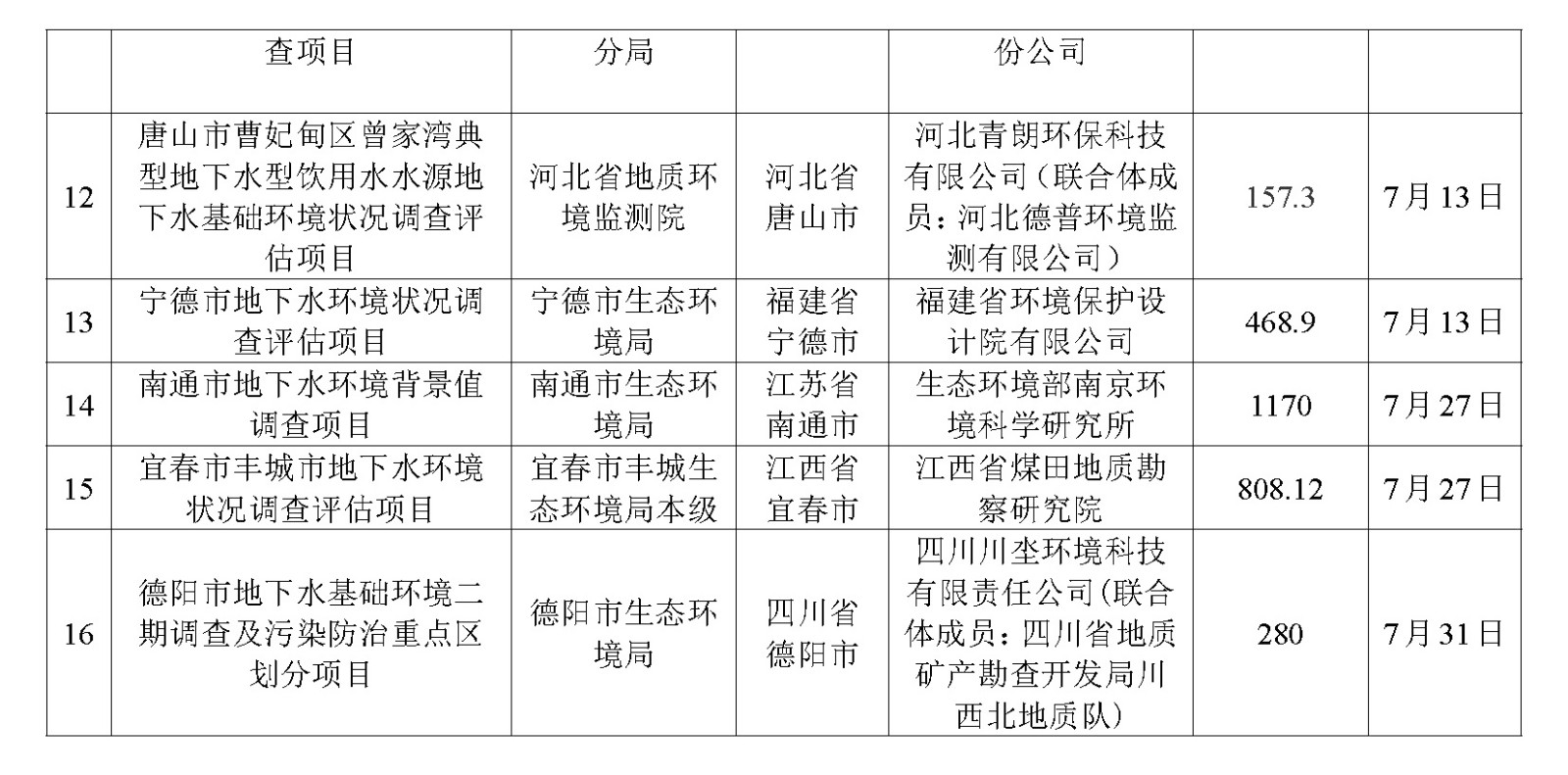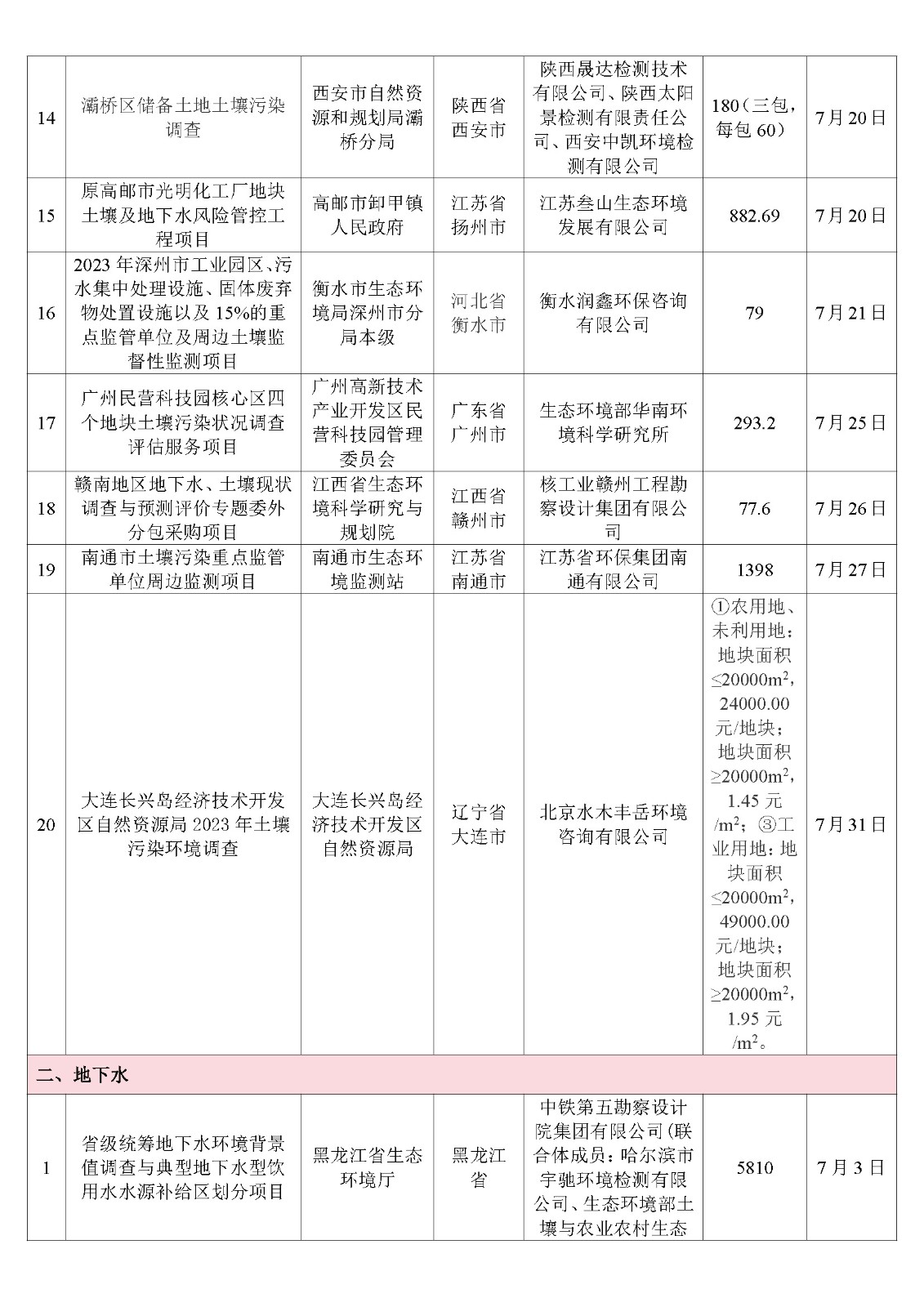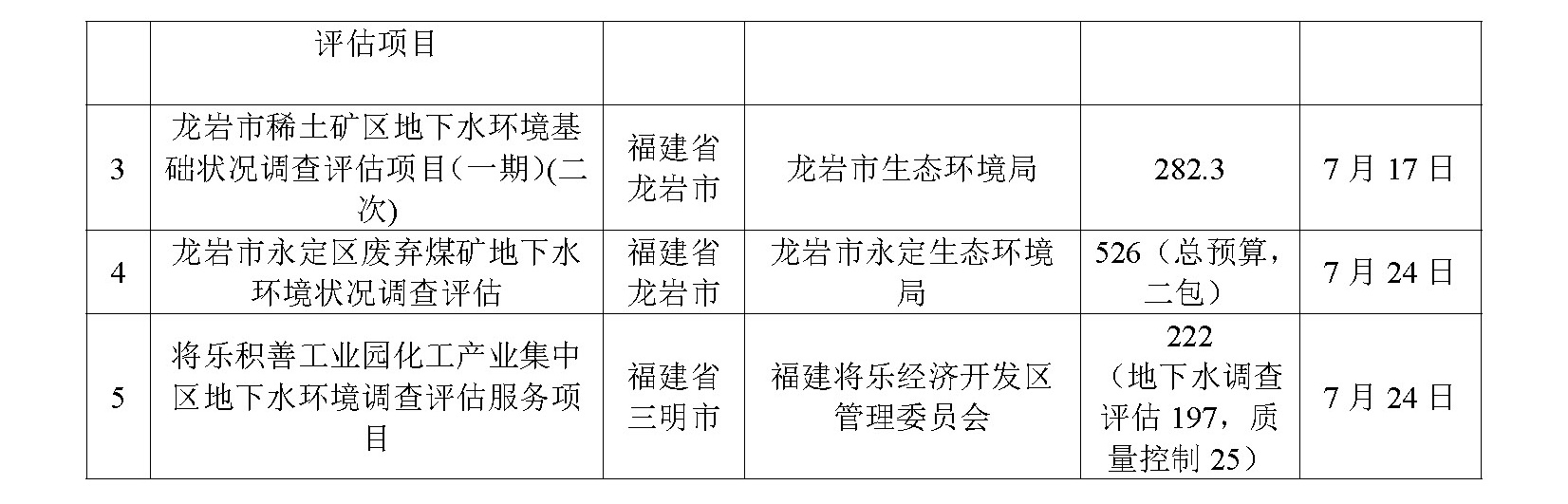 7月土壤、地下水环境调查评估与修复项目招标及中标信息