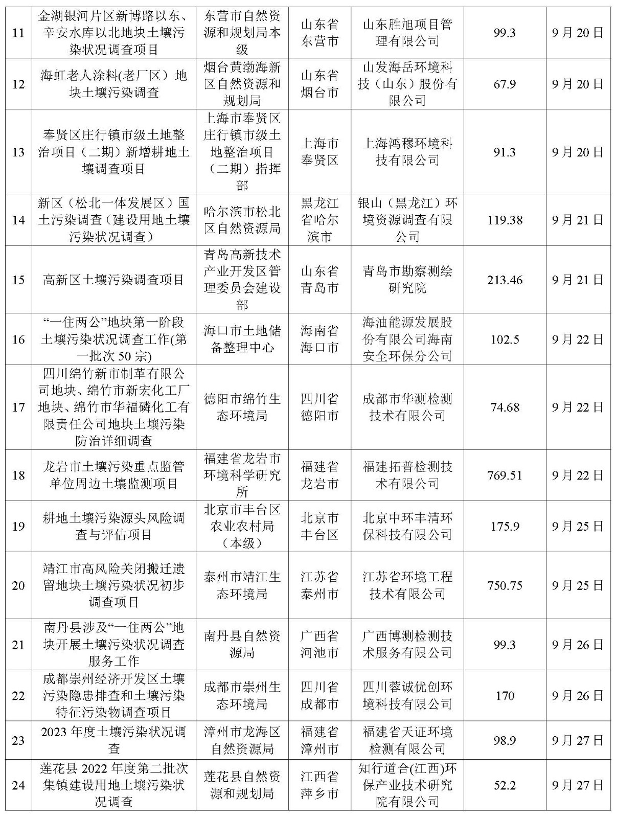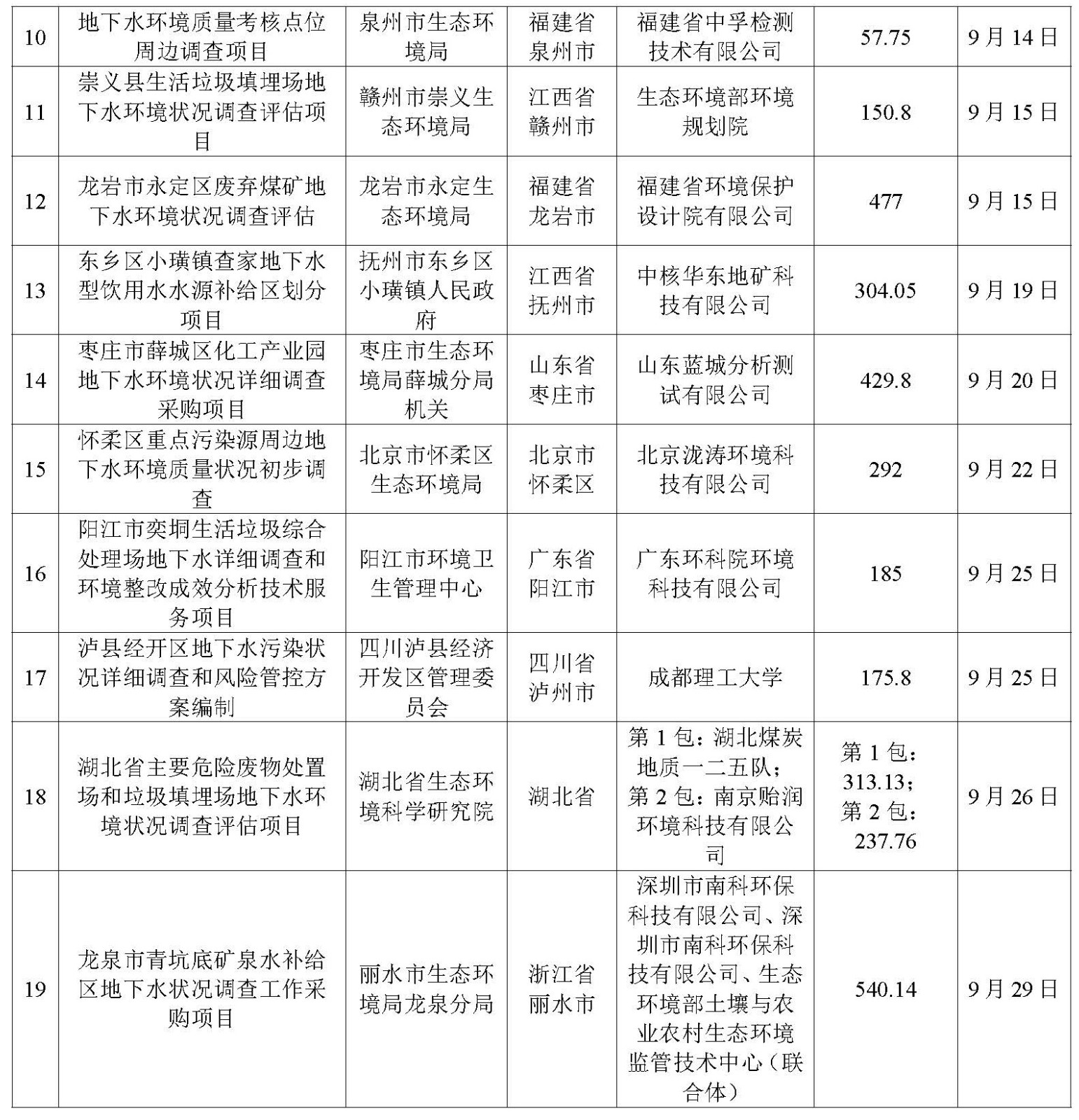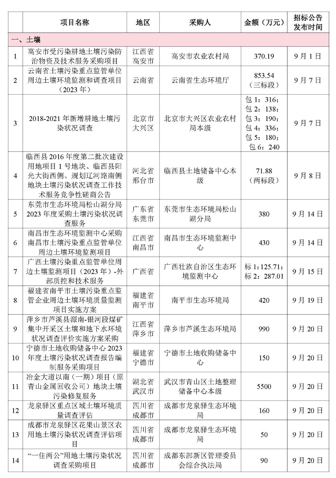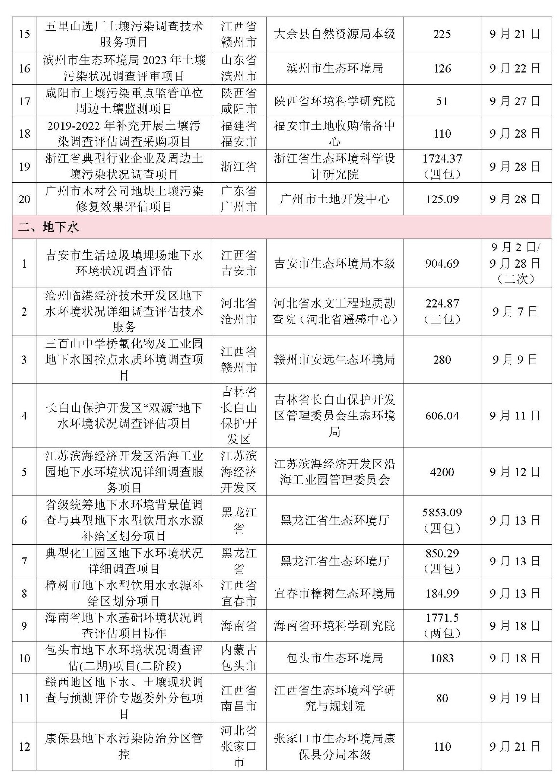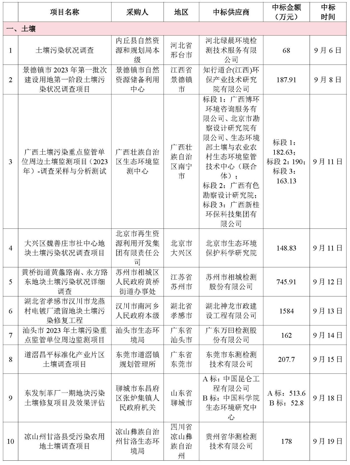 9月土壤、地下水环境调查评估与修复项目招标及中标信息