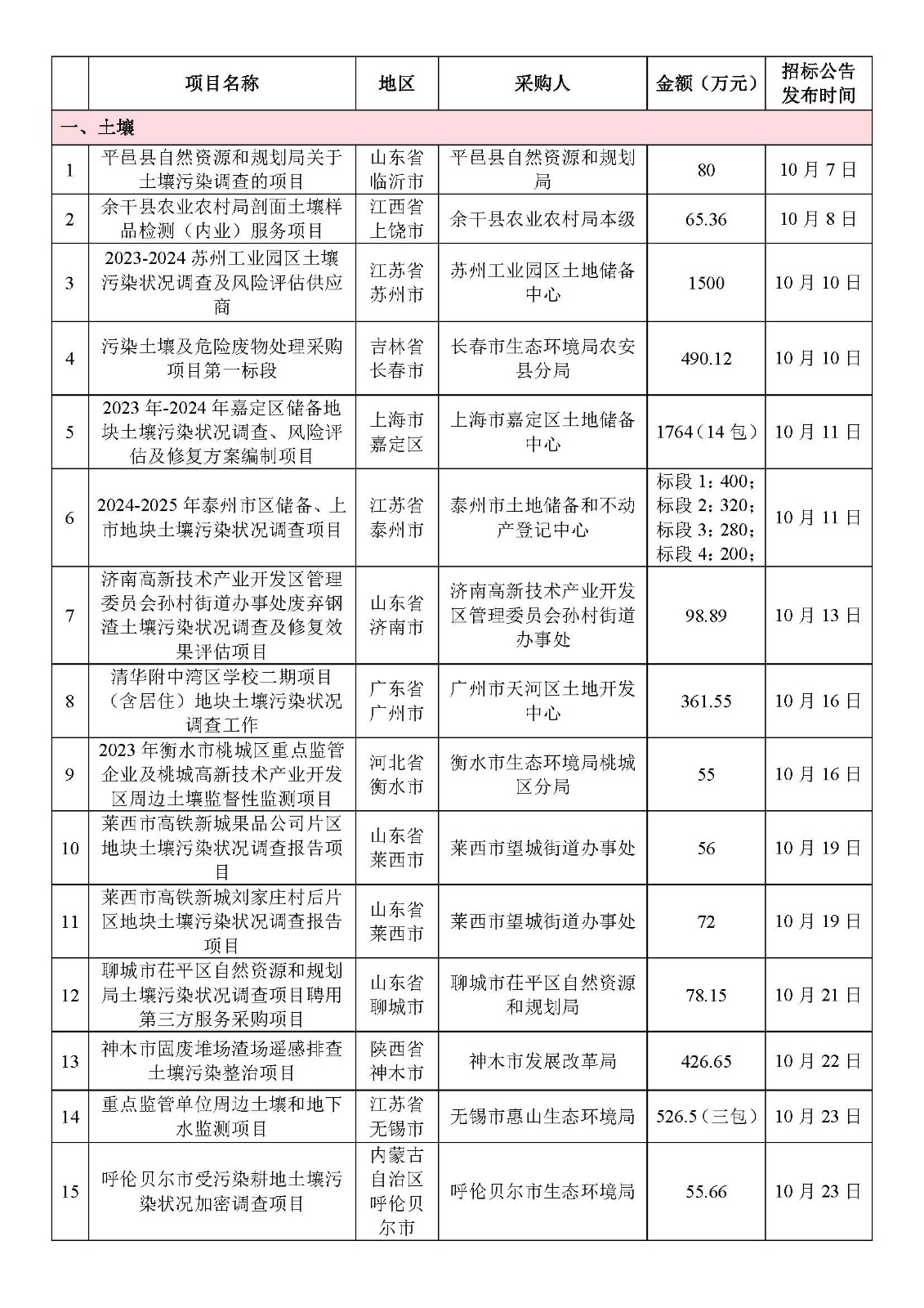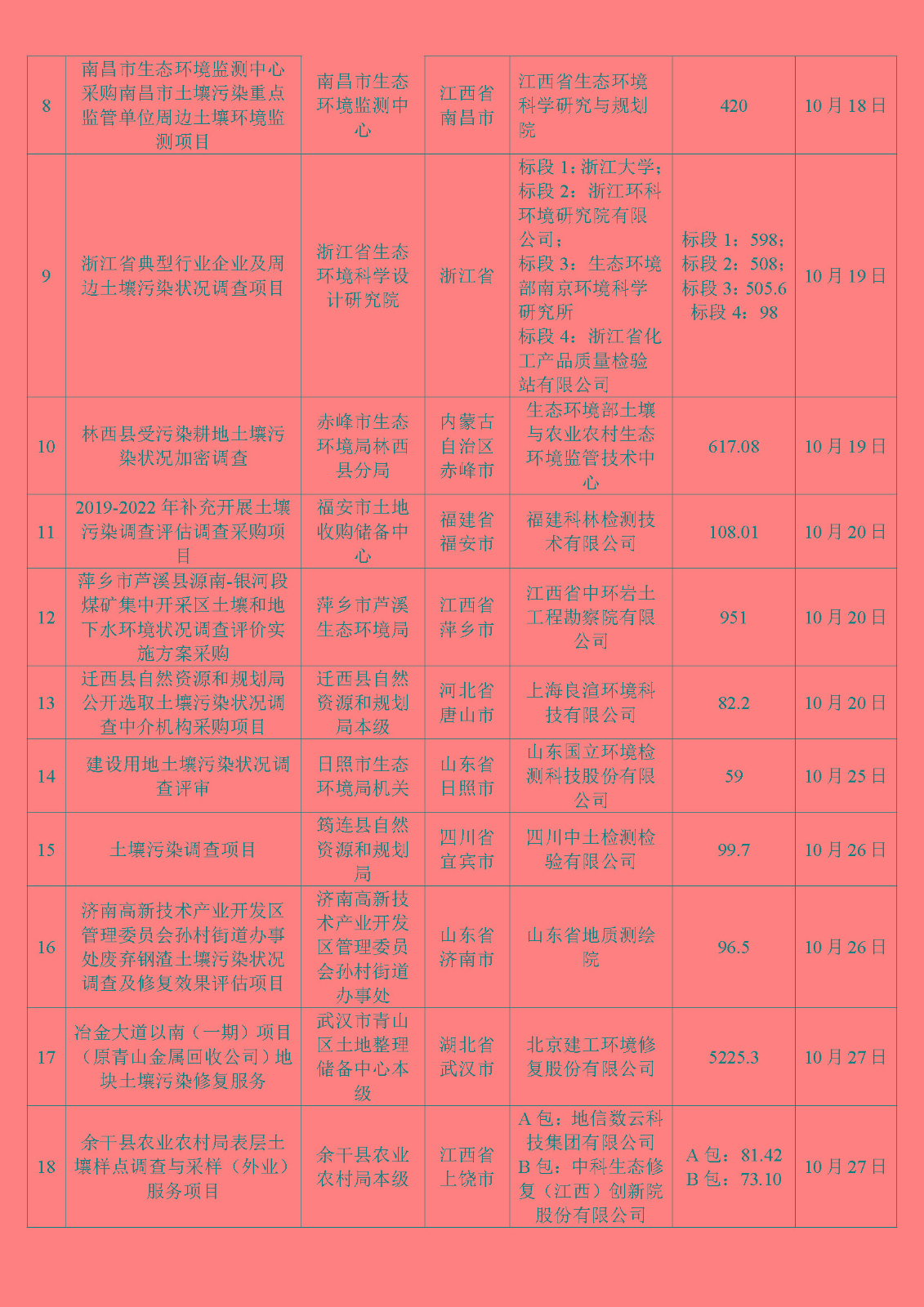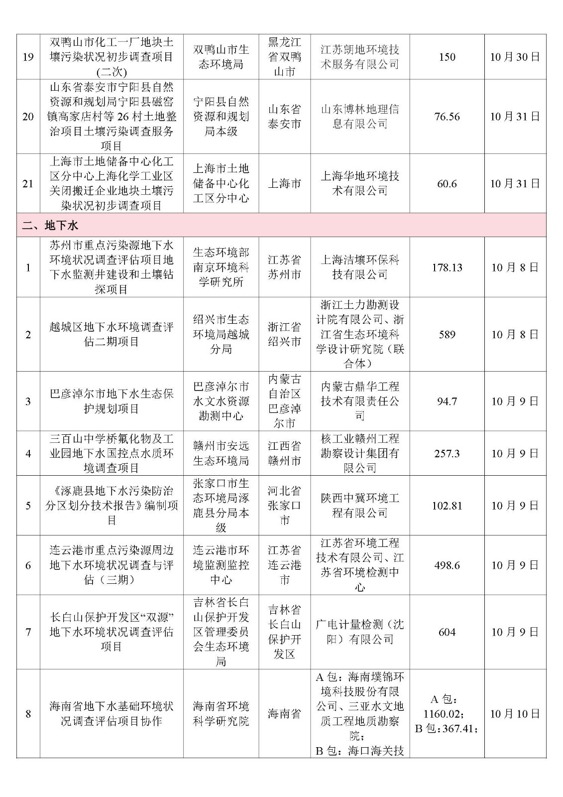 10月土壤、地下水环境调查评估与修复项目招标及中标信息