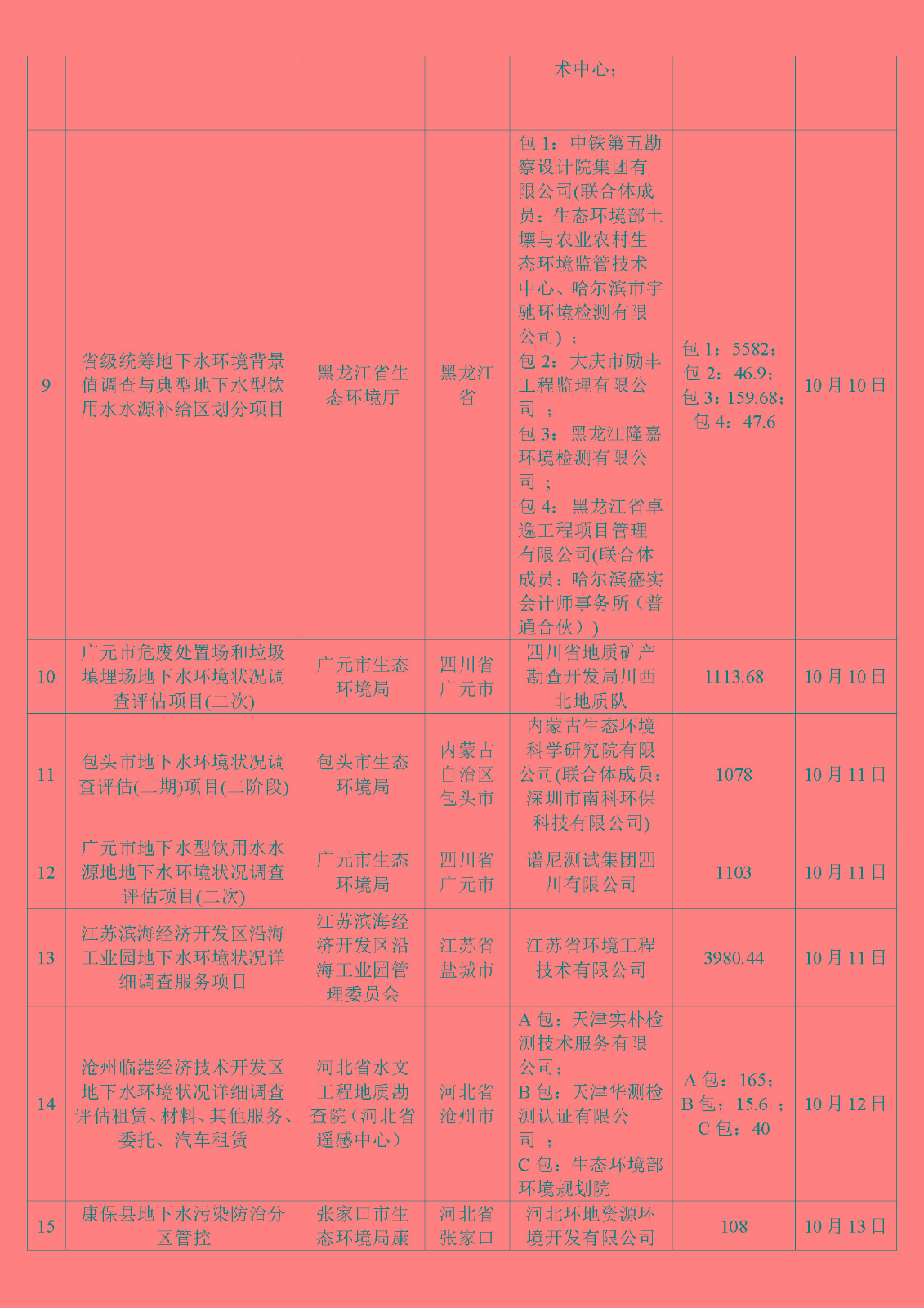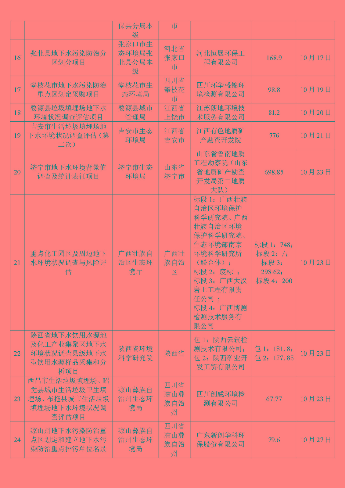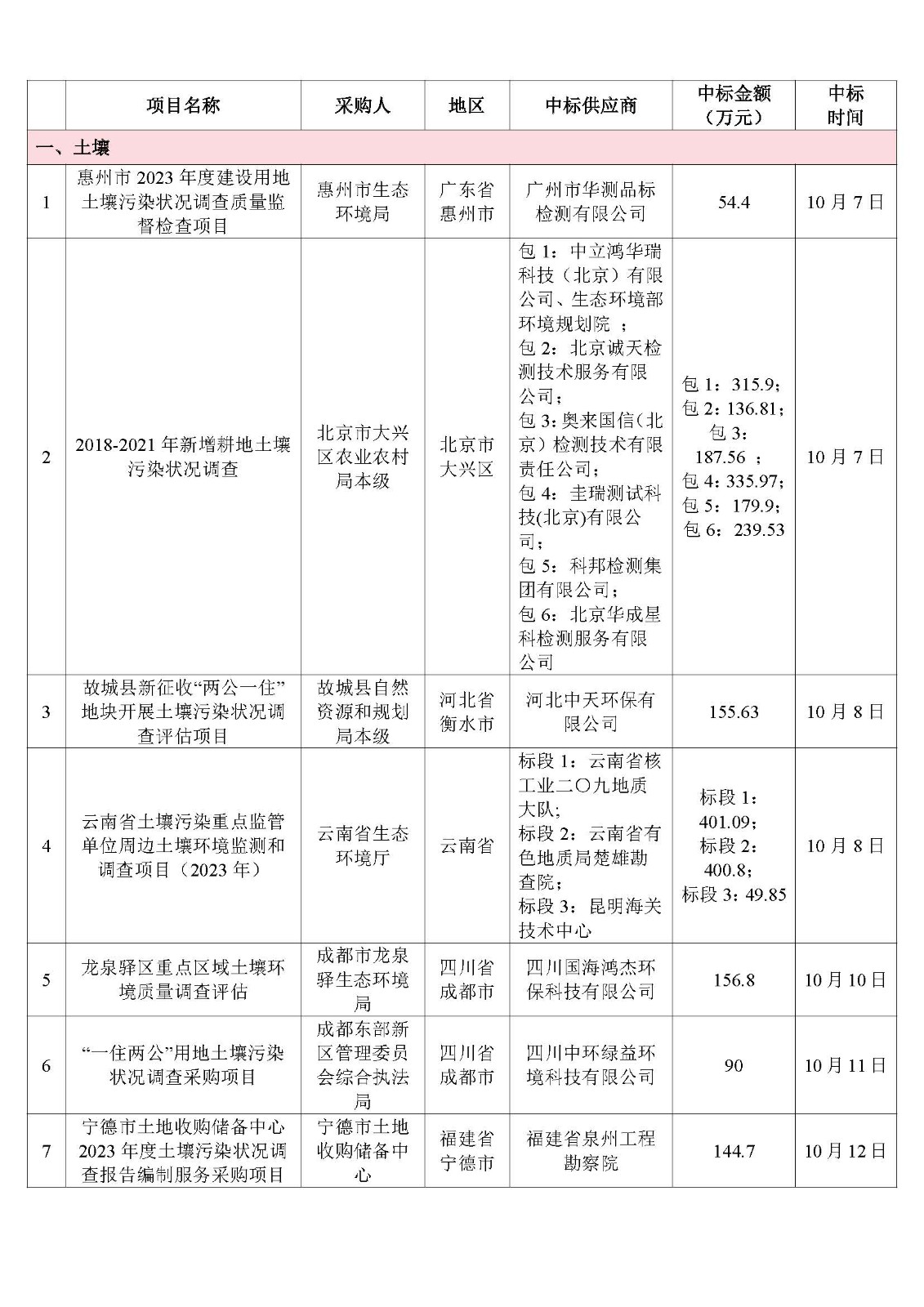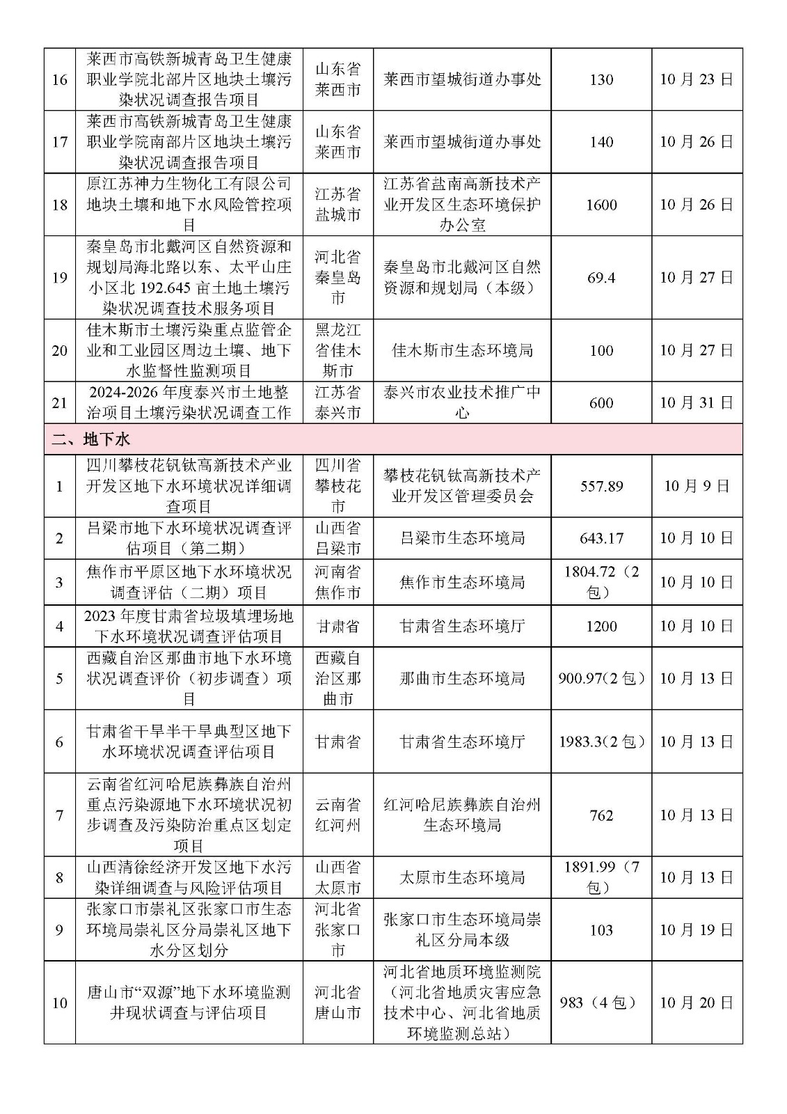 10月土壤、地下水环境调查评估与修复项目招标及中标信息
