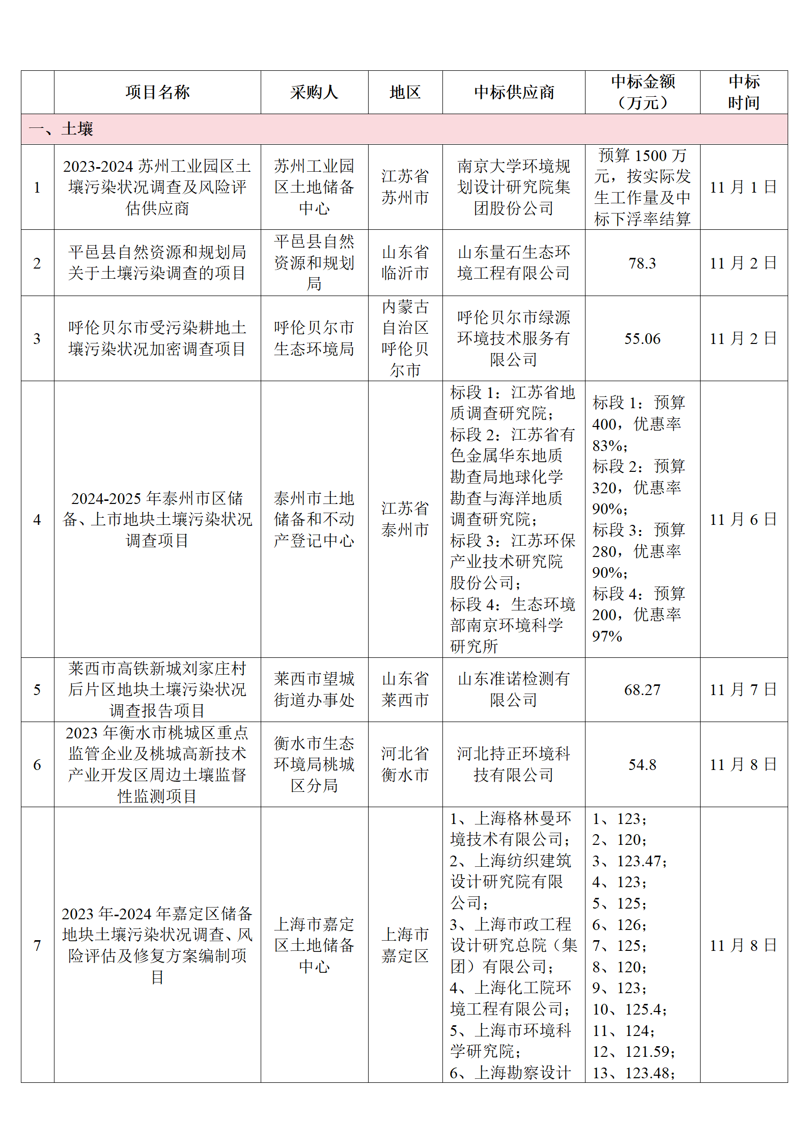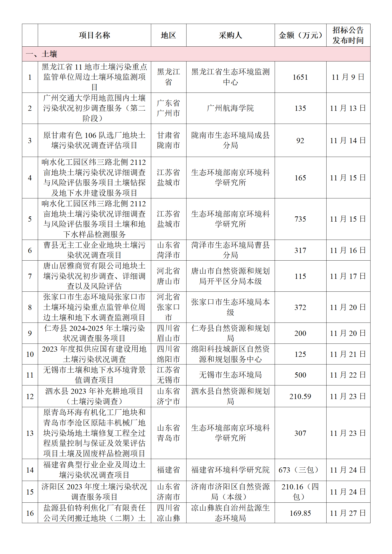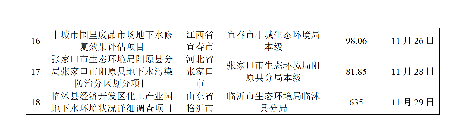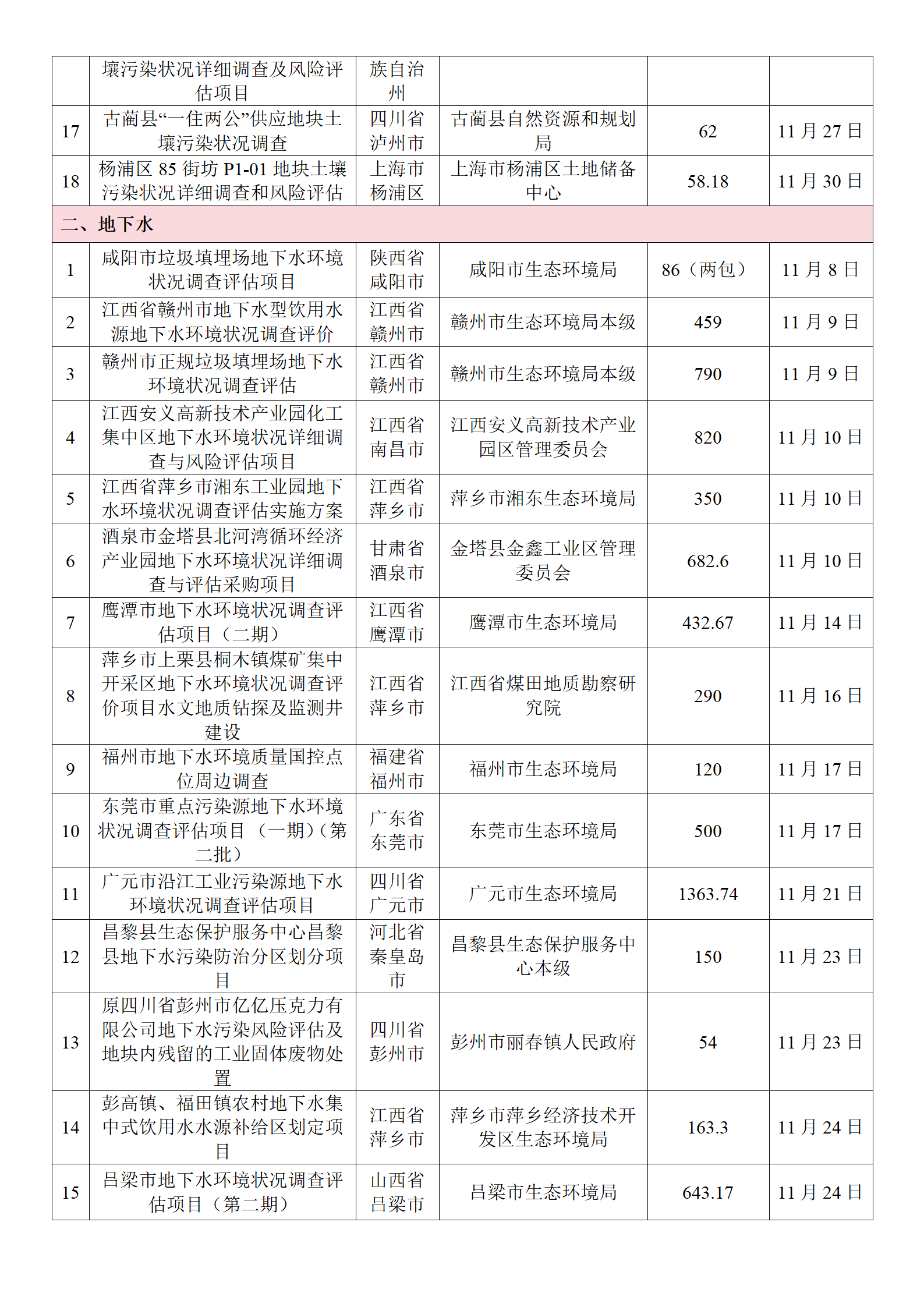 11月土壤、地下水环境调查评估与修复项目招标及中标信息