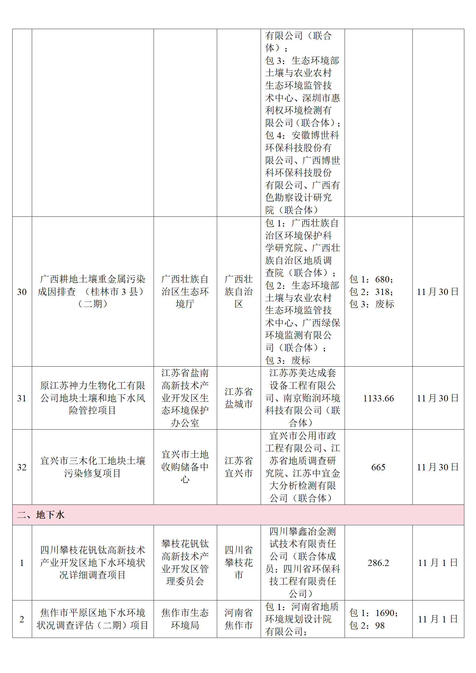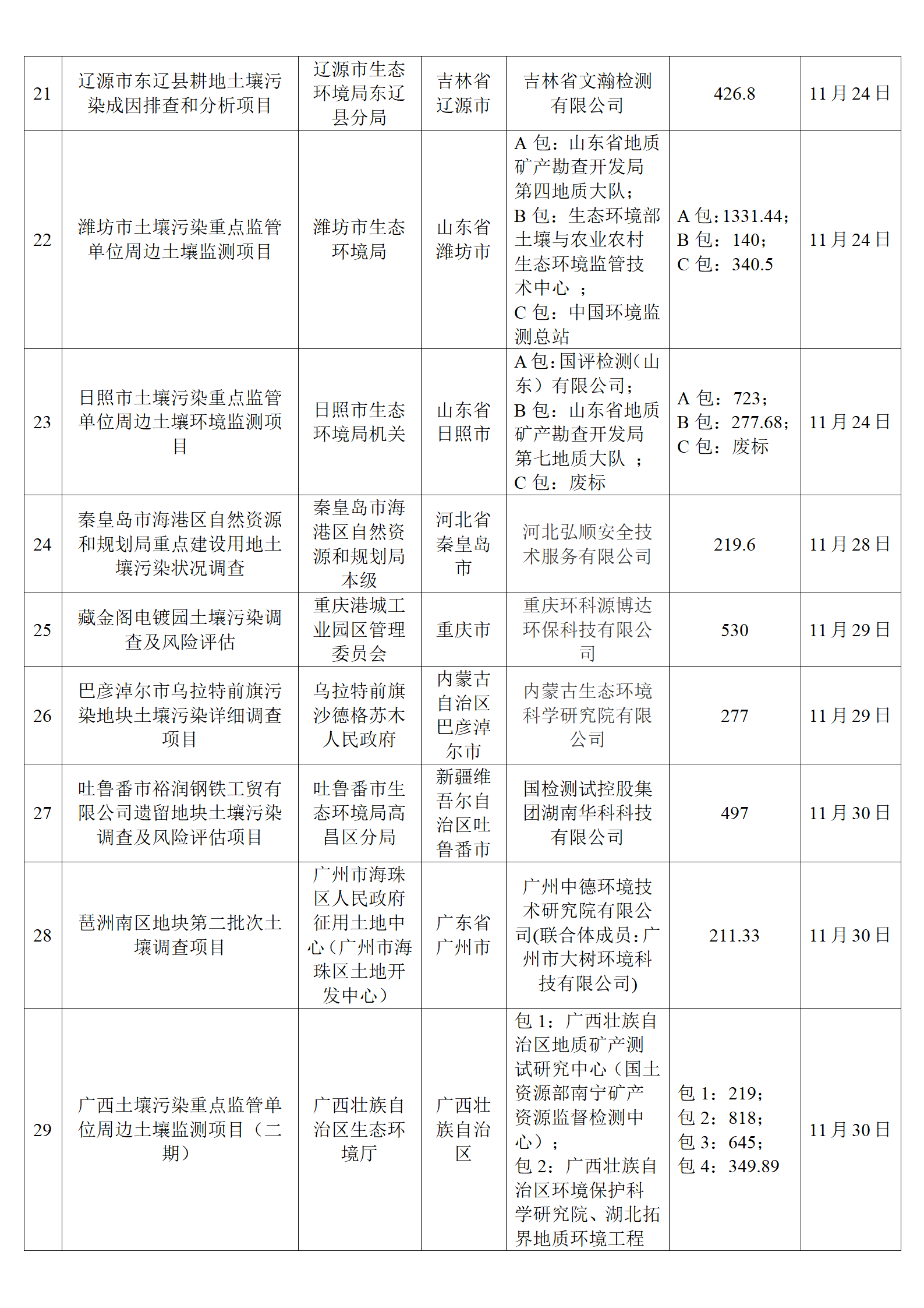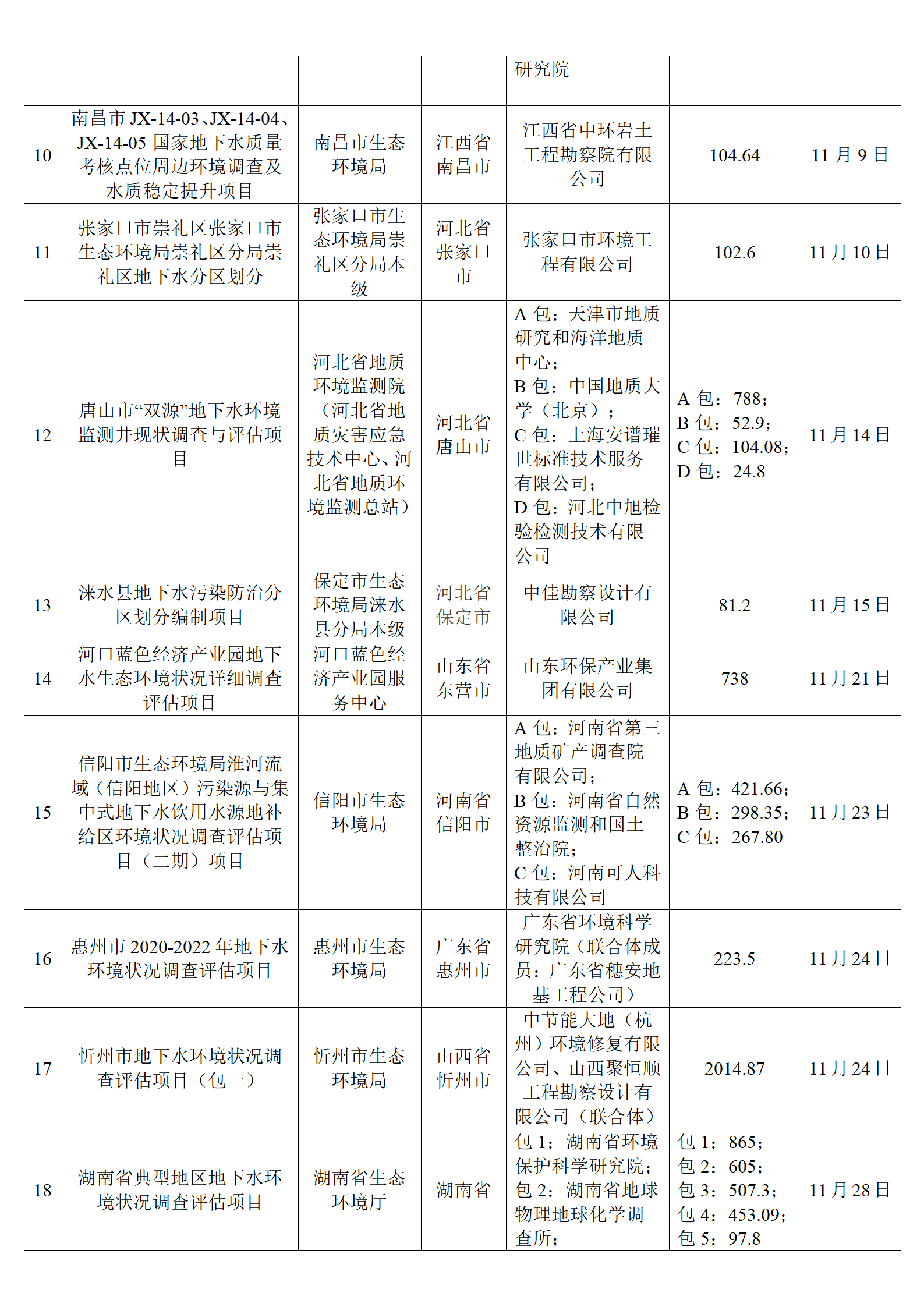 11月土壤、地下水环境调查评估与修复项目招标及中标信息