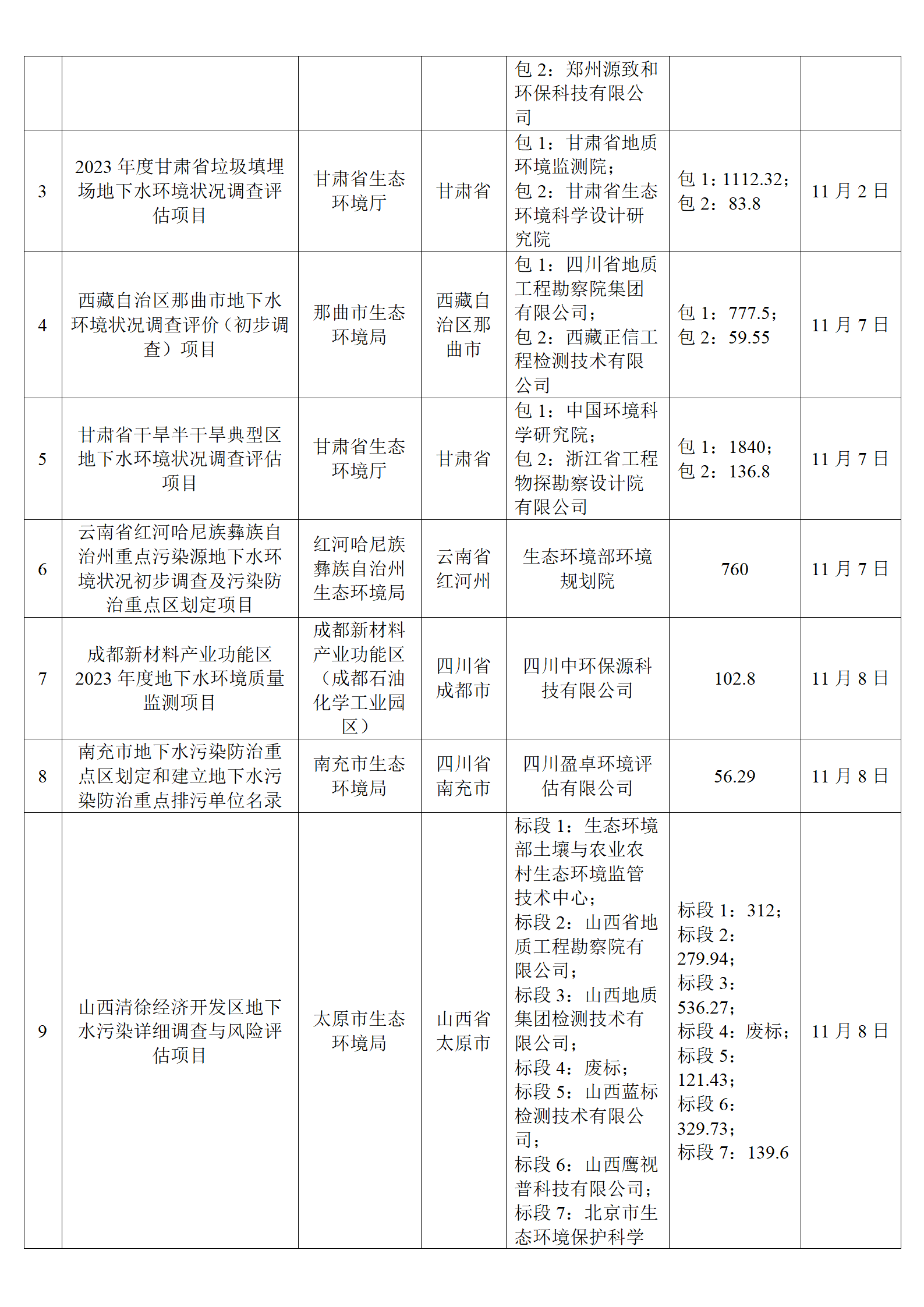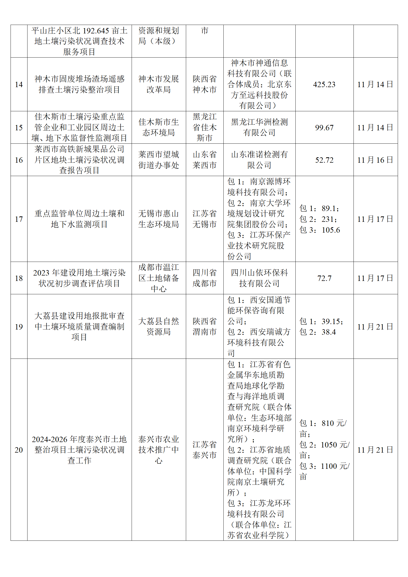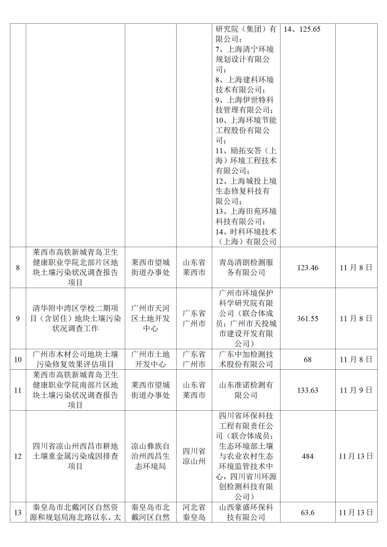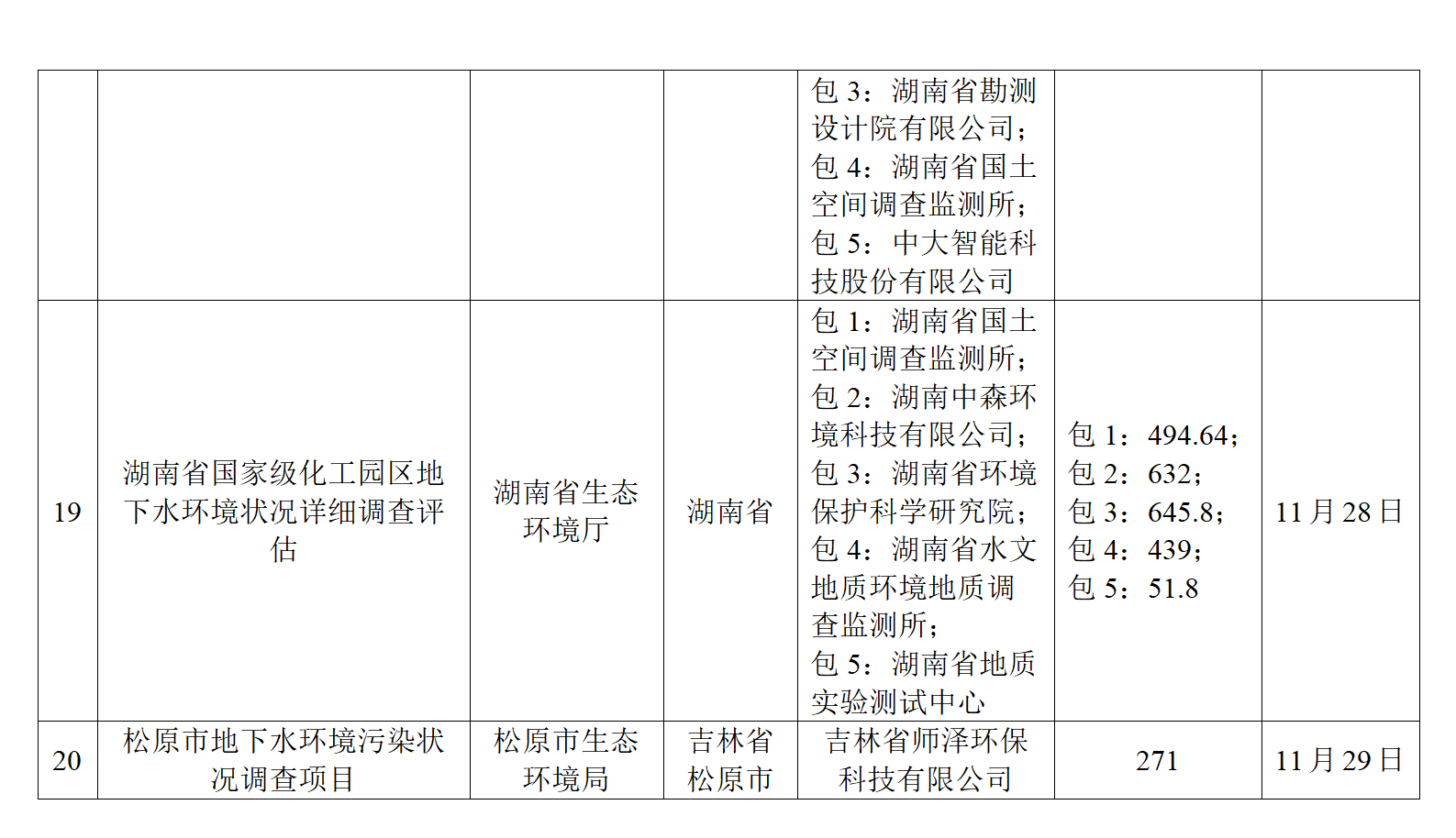 11月土壤、地下水环境调查评估与修复项目招标及中标信息