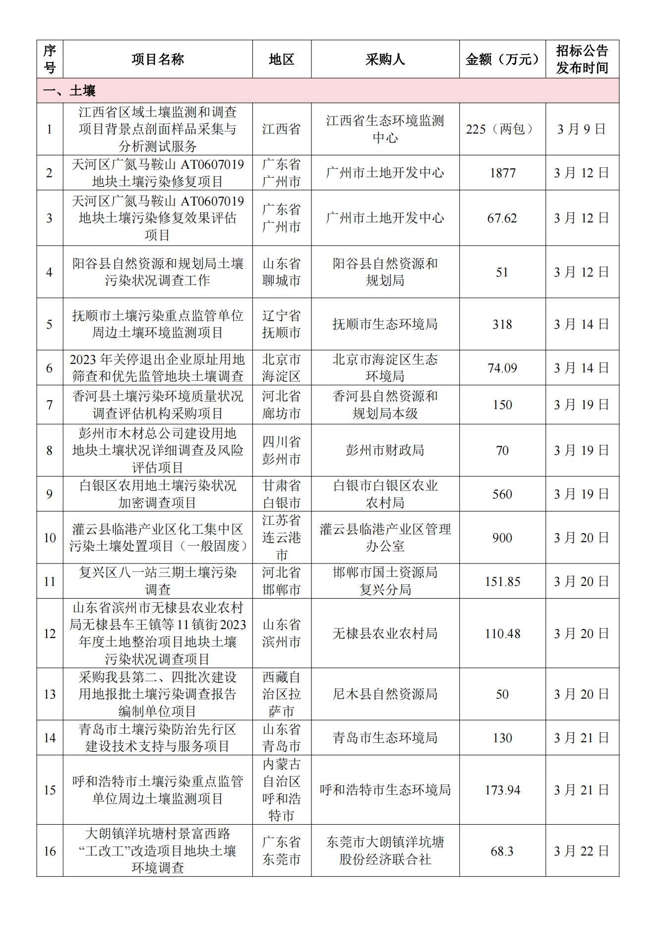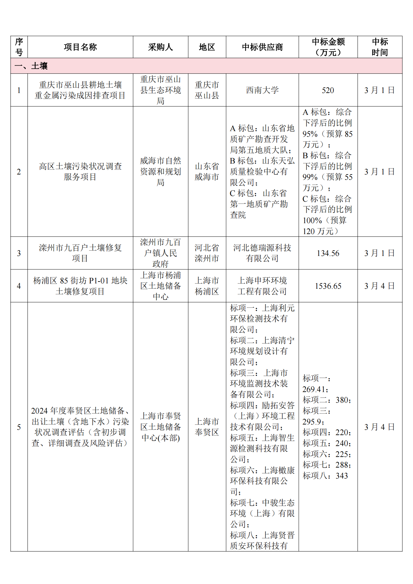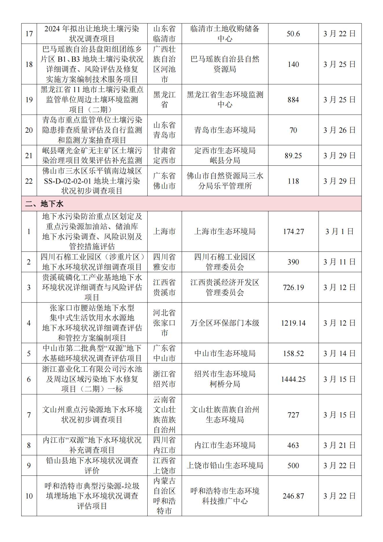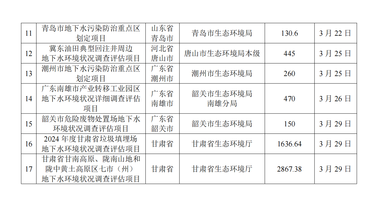 3月土壤、地下水环境调查评估与修复项目招标及中标信息