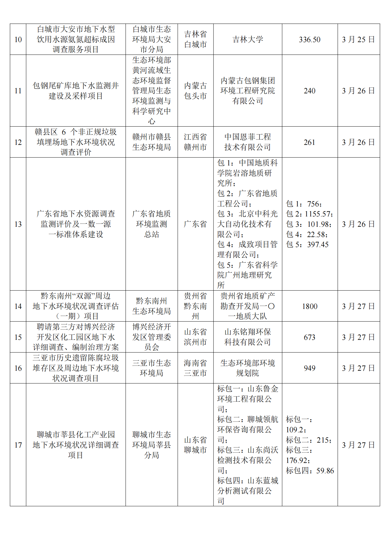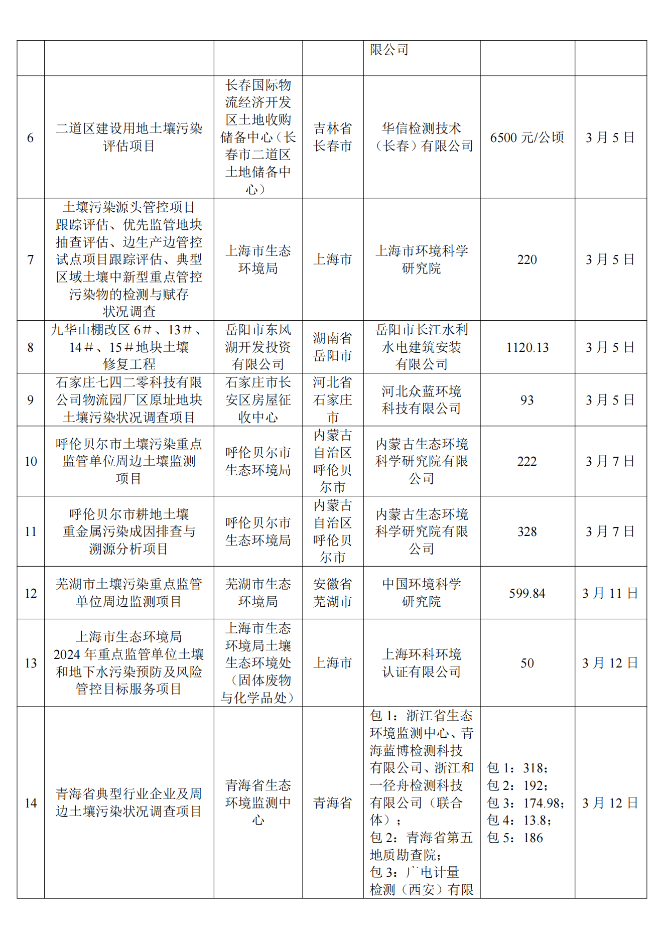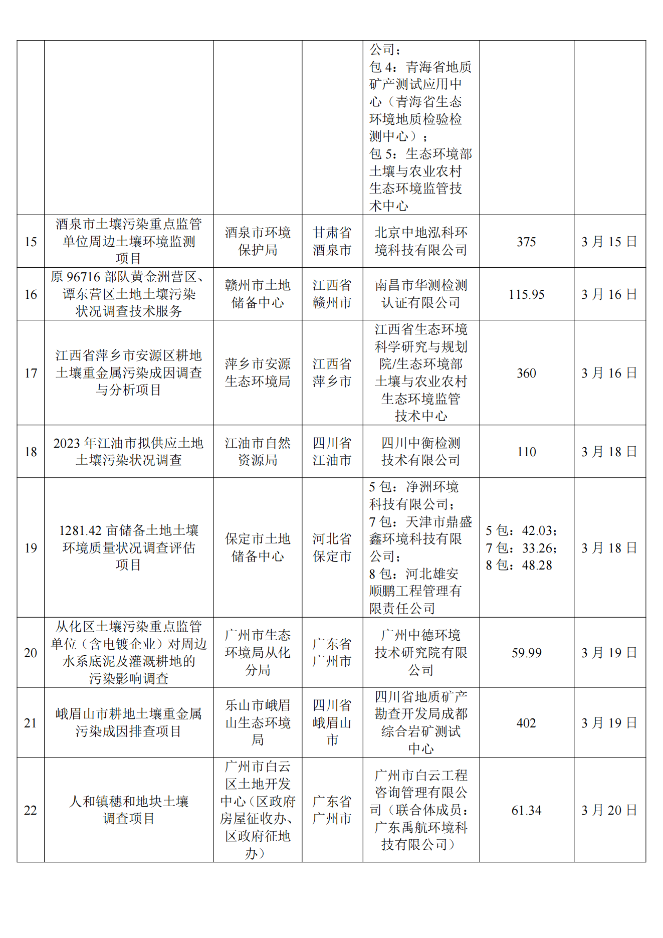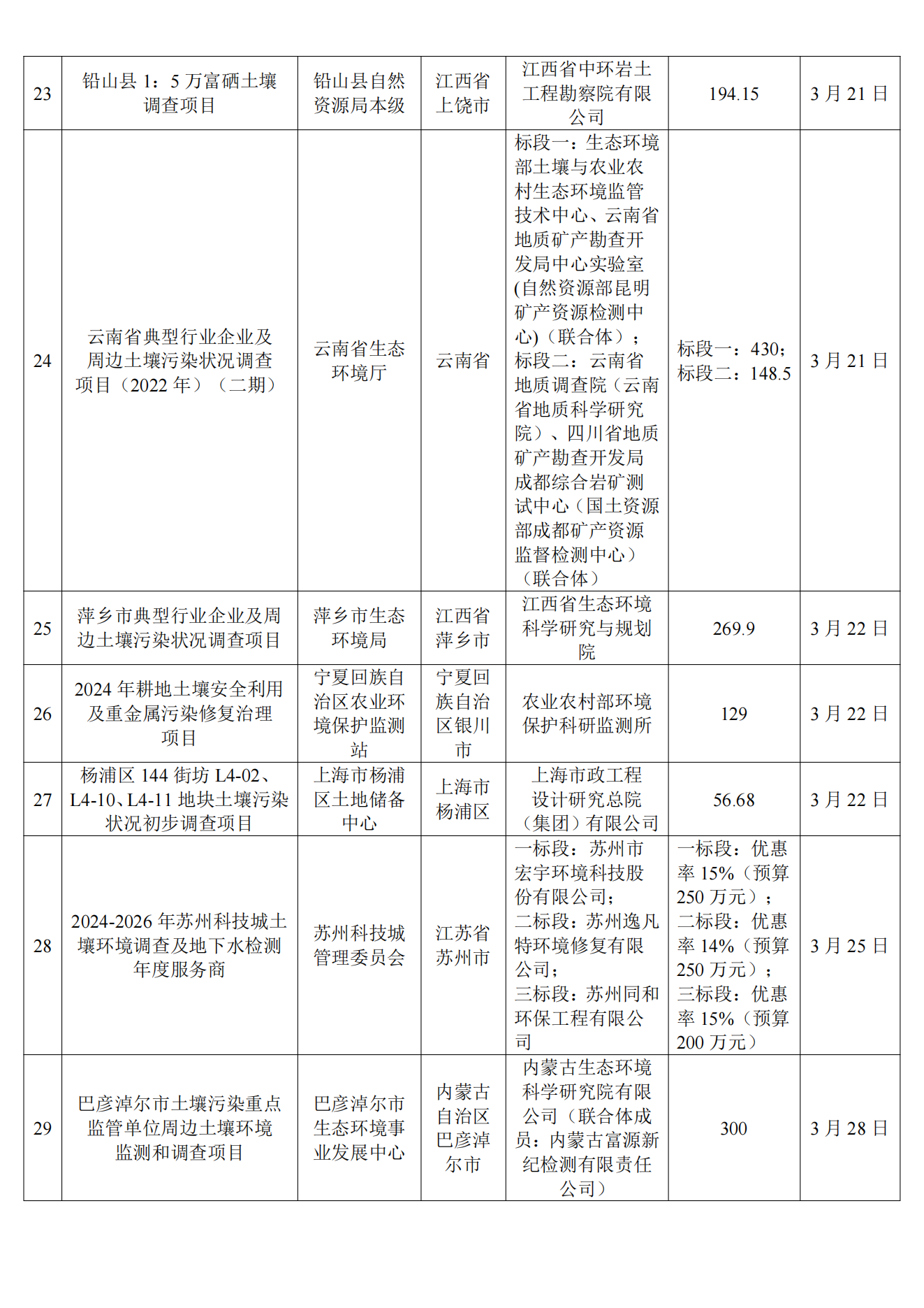 3月土壤、地下水环境调查评估与修复项目招标及中标信息