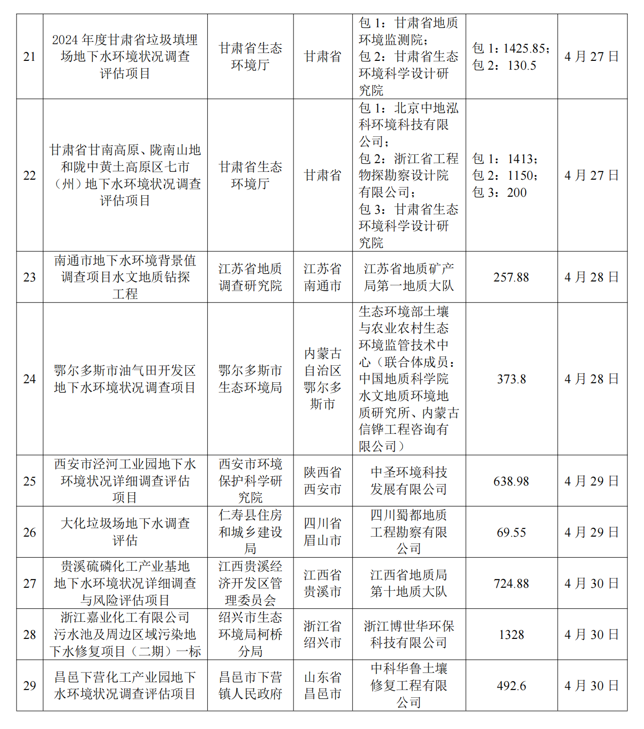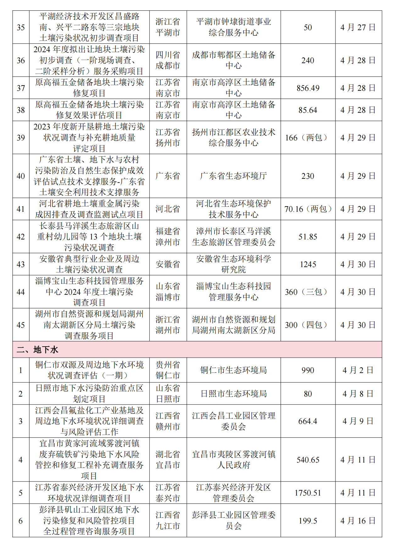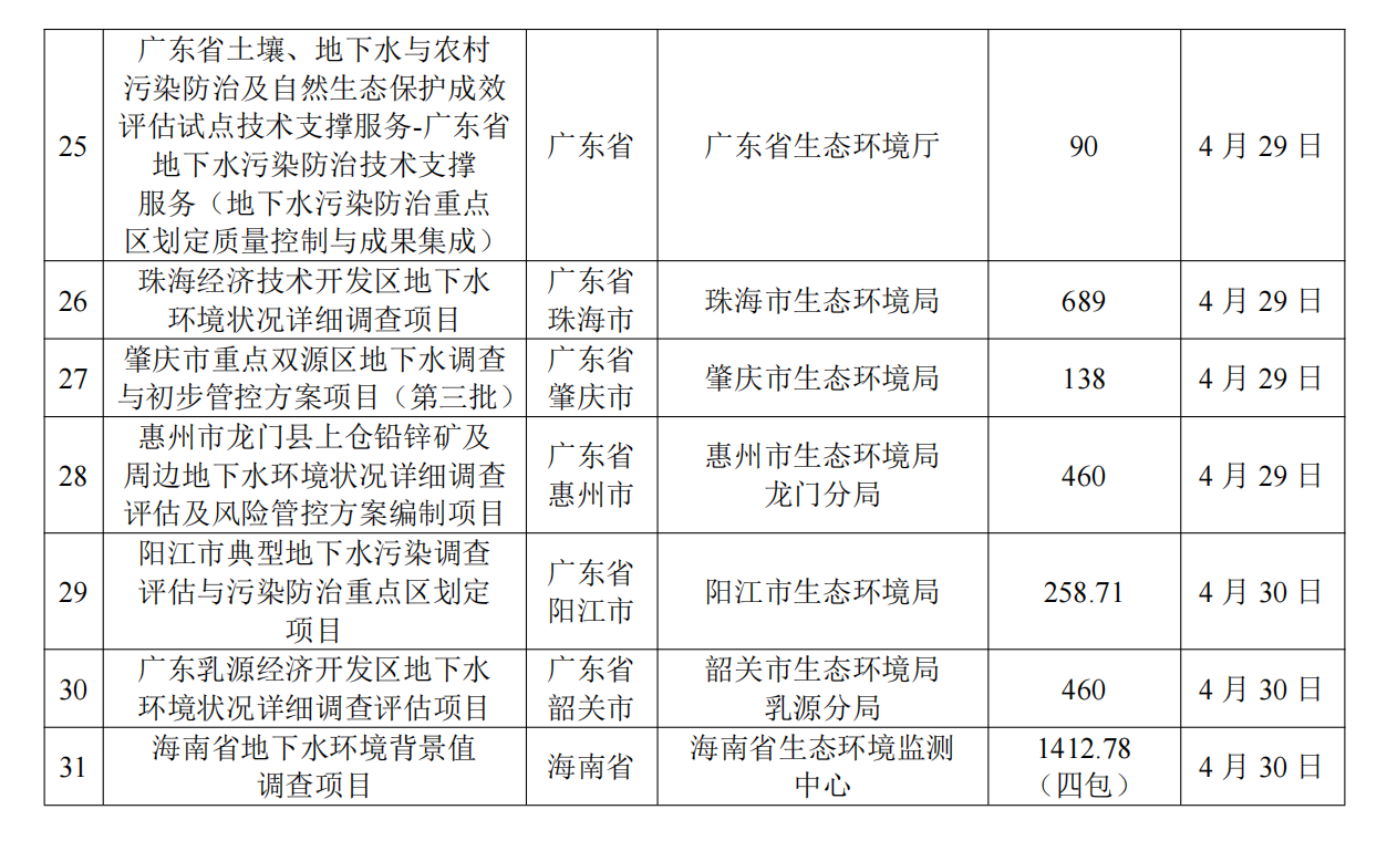 4月土壤、地下水环境调查评估与修复项目招标及中标信息