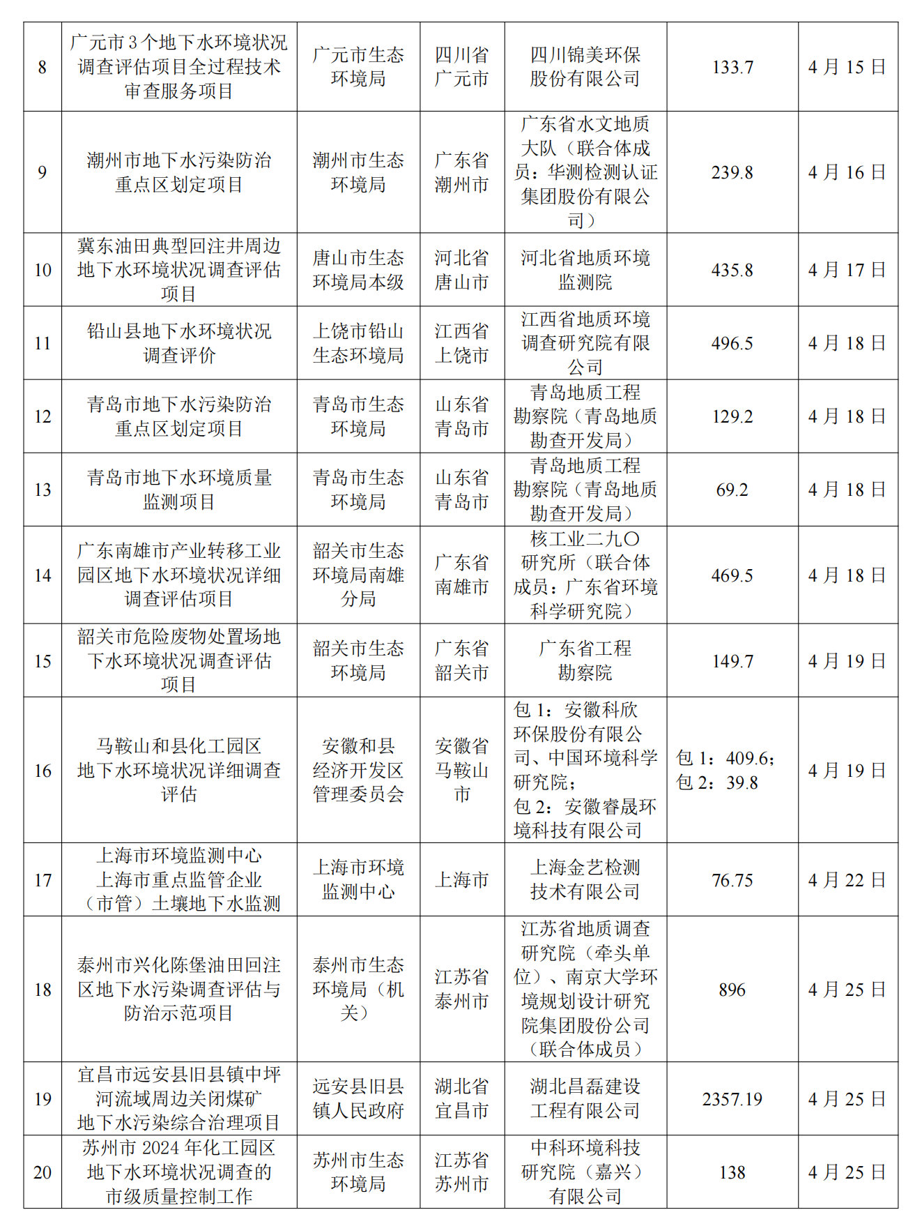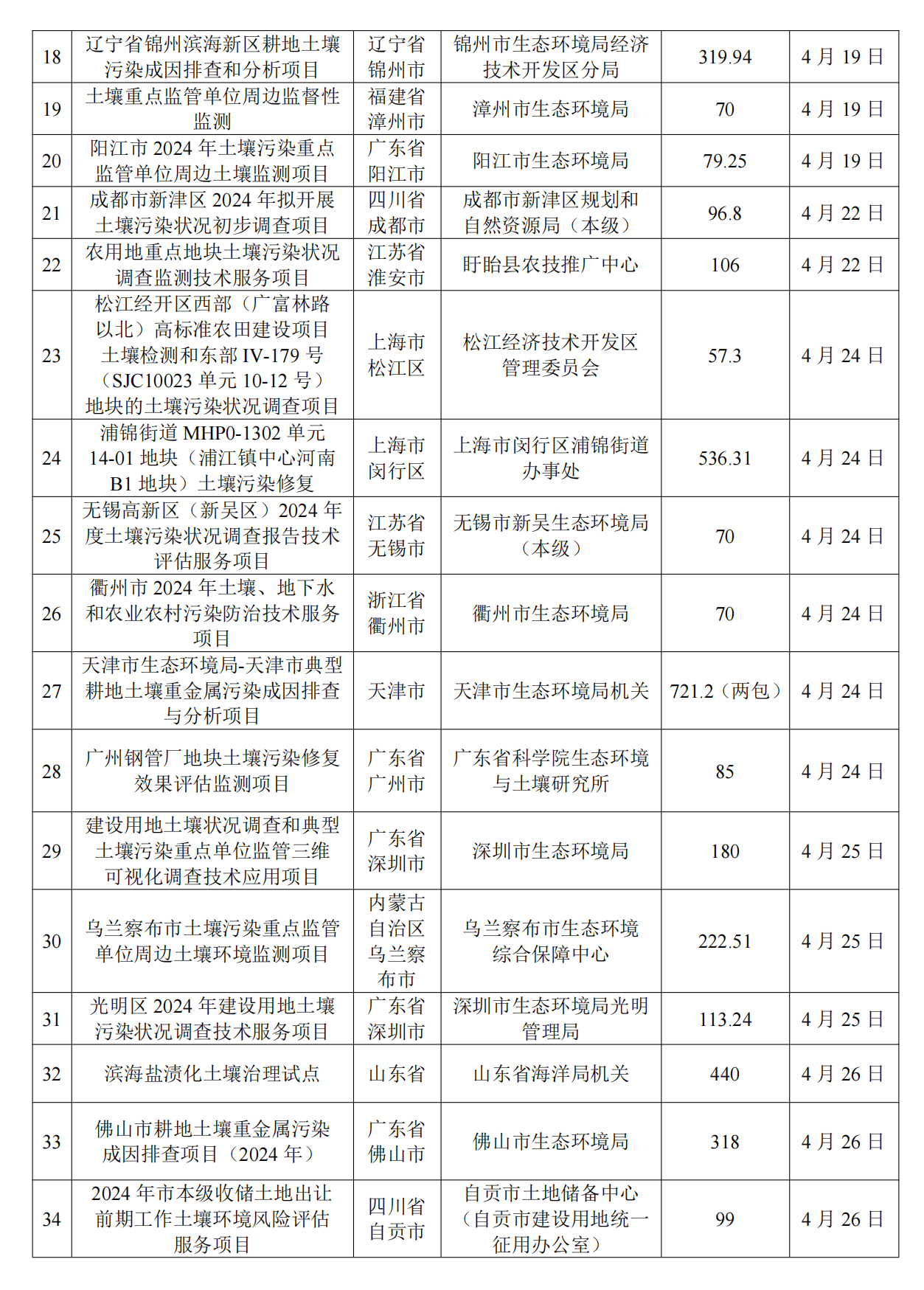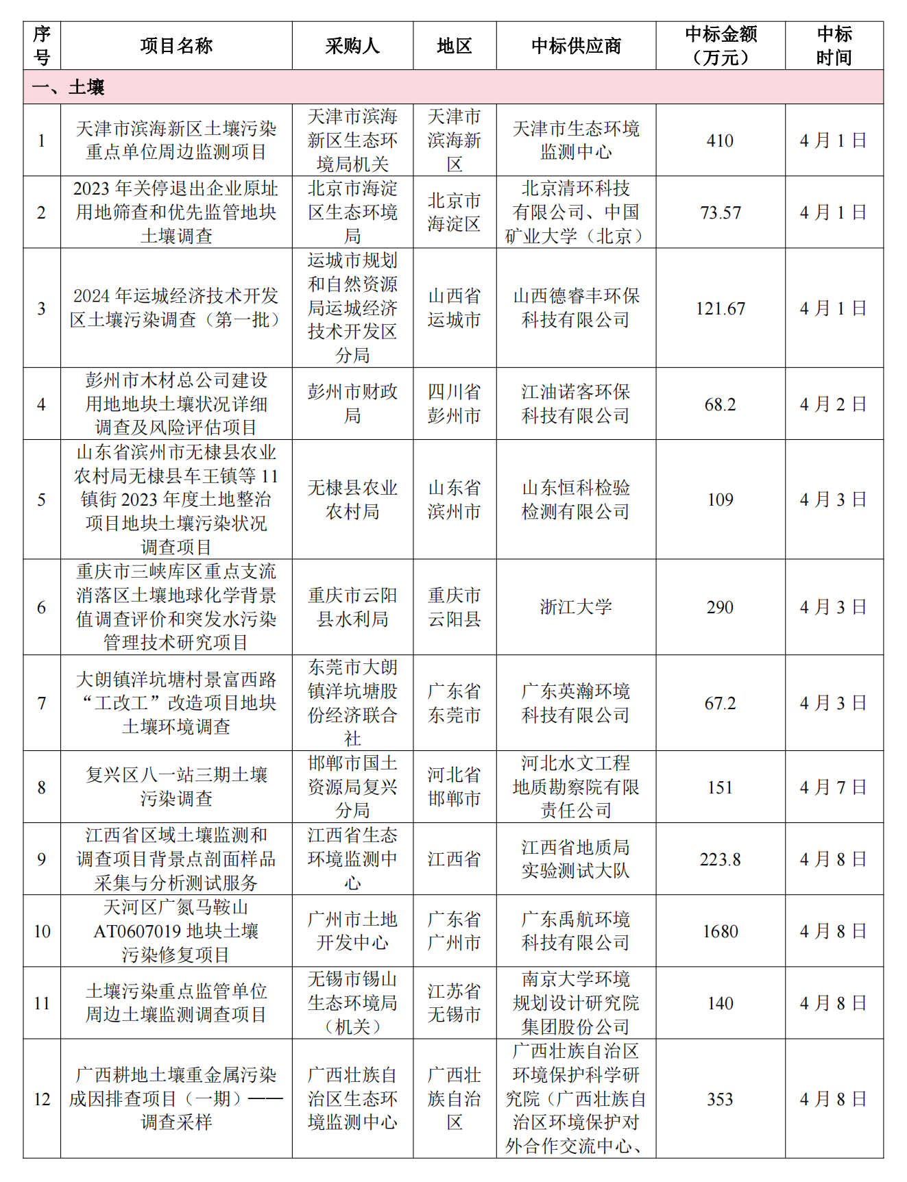 4月土壤、地下水环境调查评估与修复项目招标及中标信息