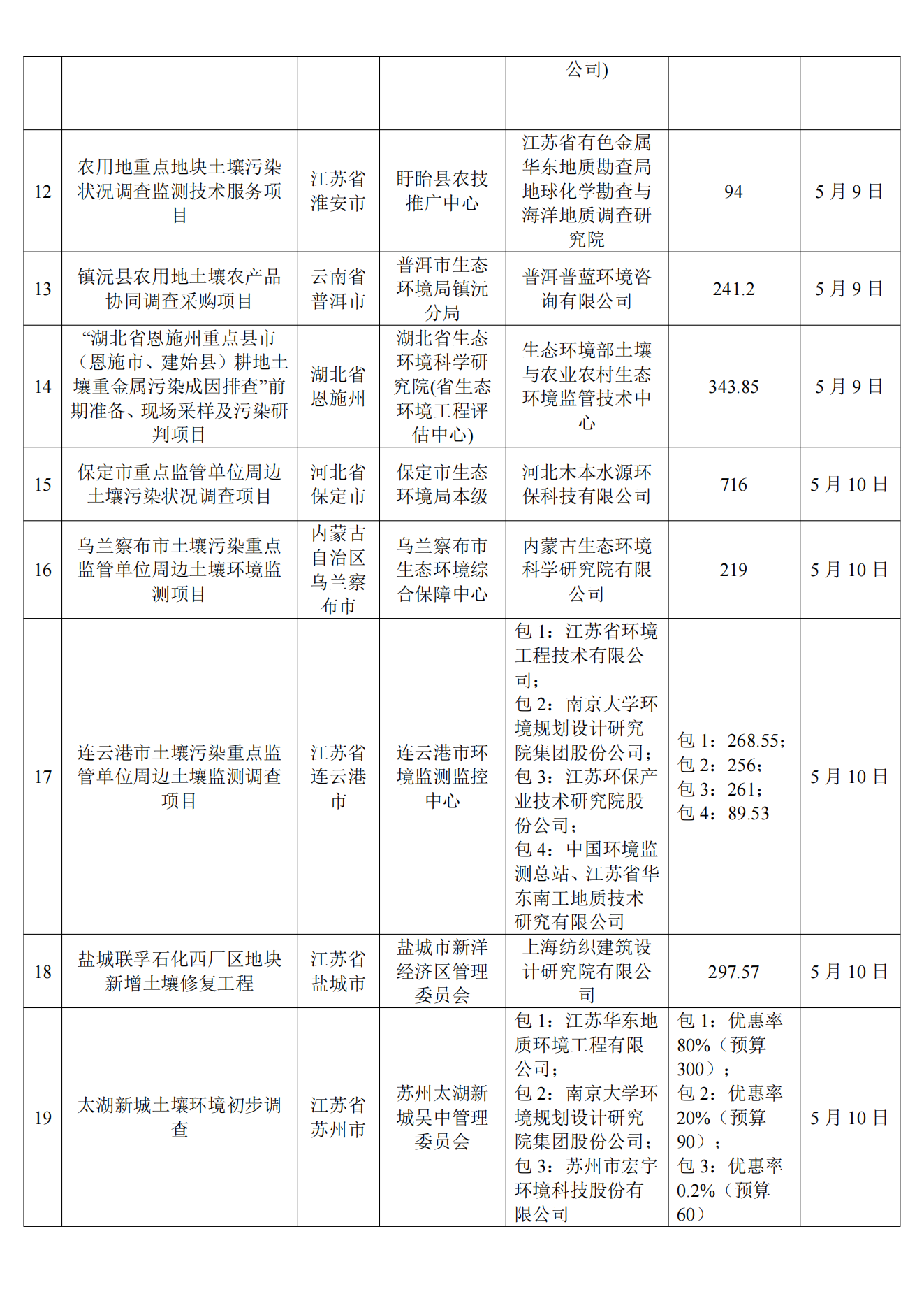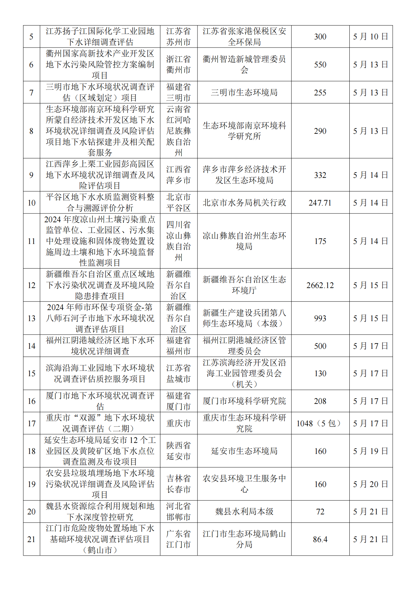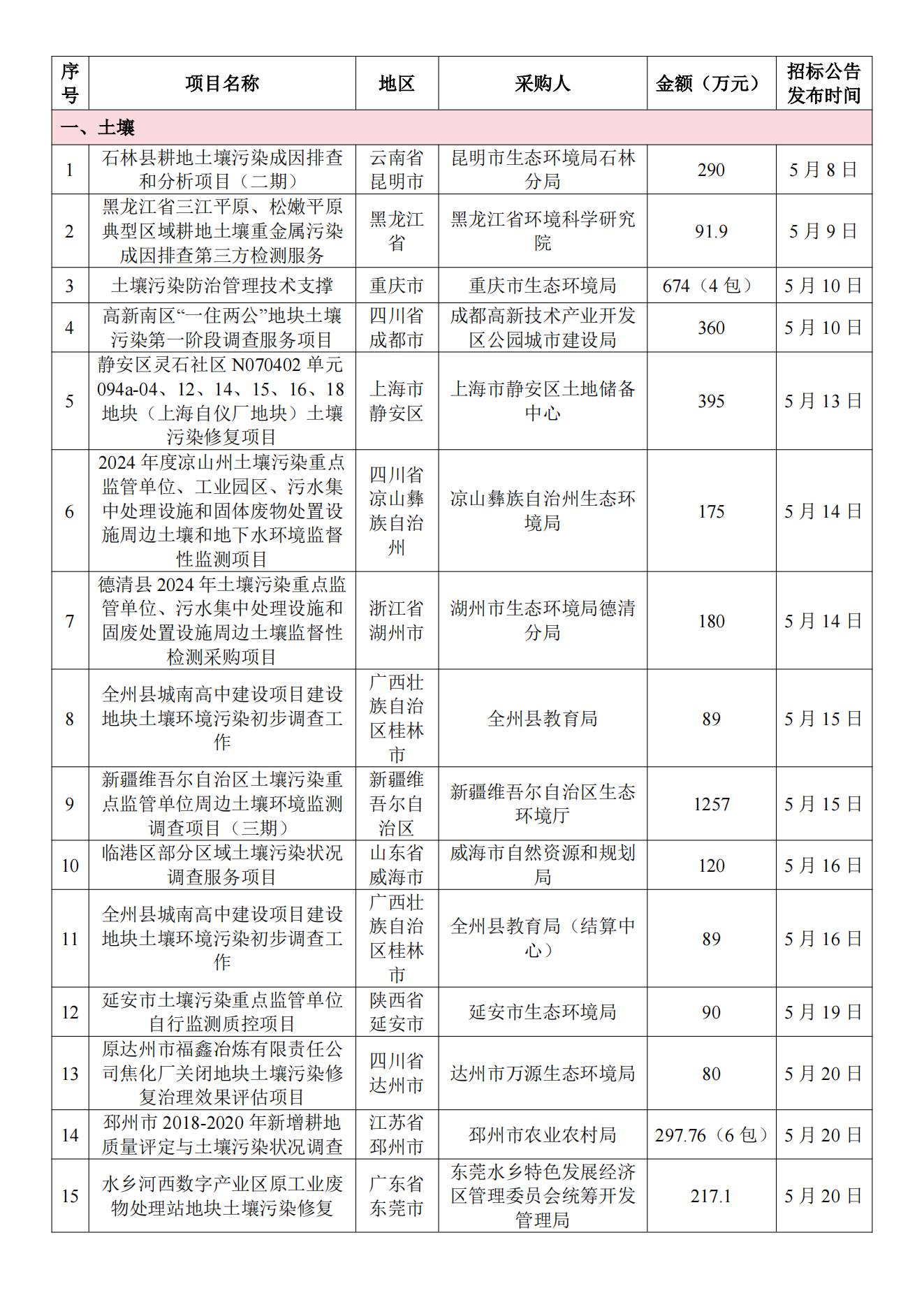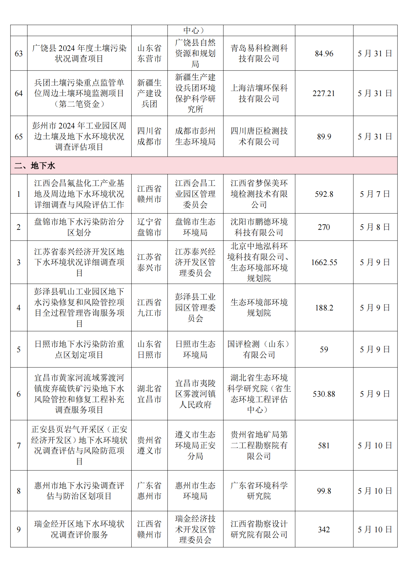 5月土壤、地下水环境调查评估与修复项目招标及中标信息