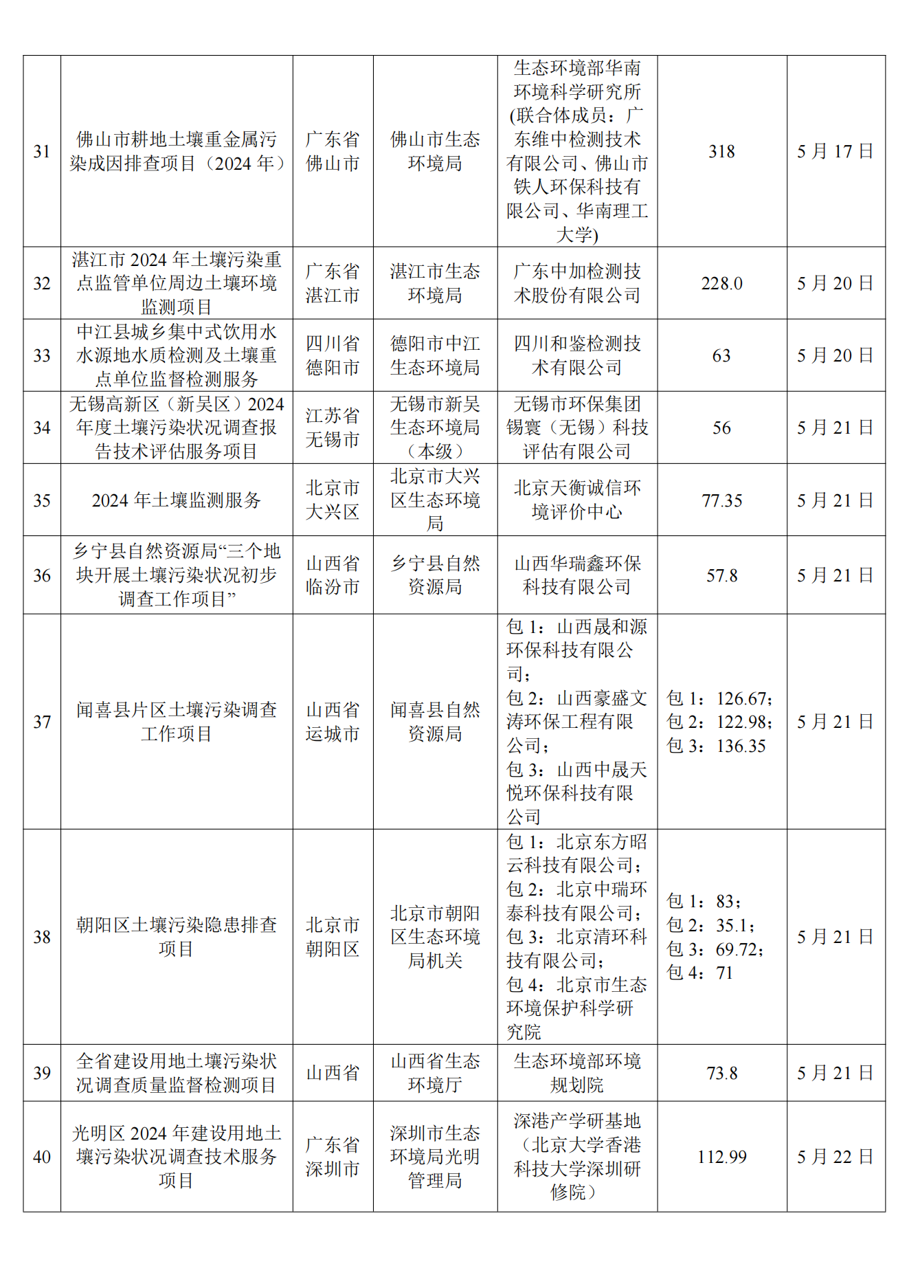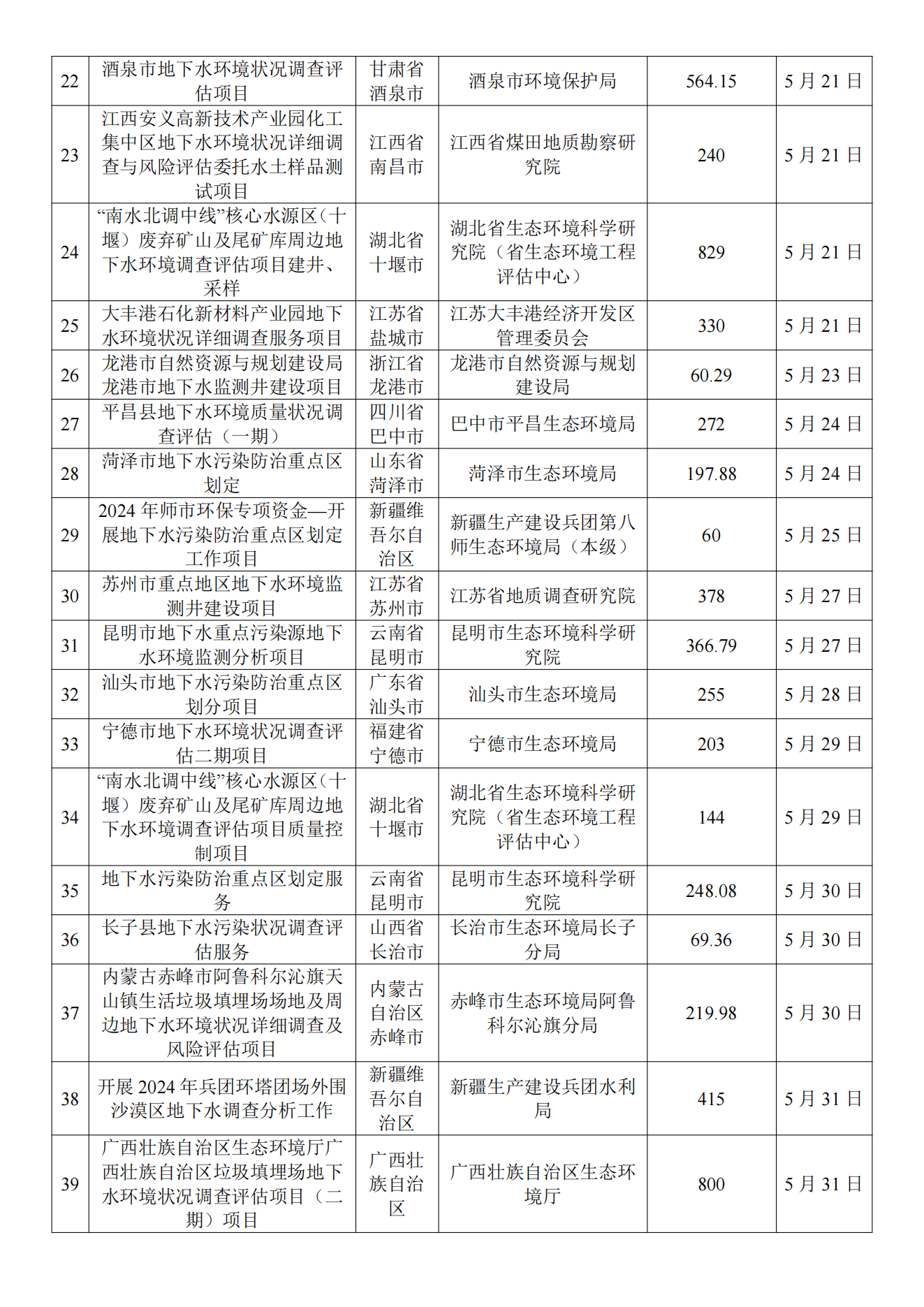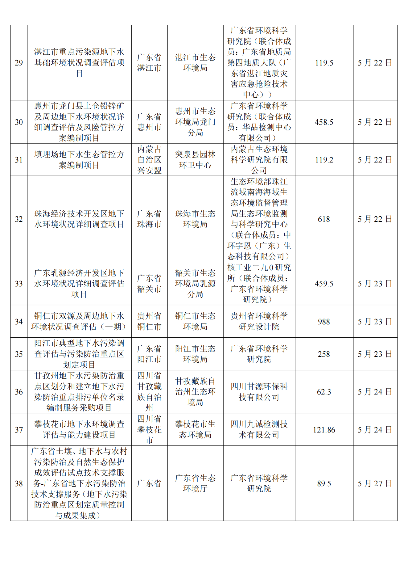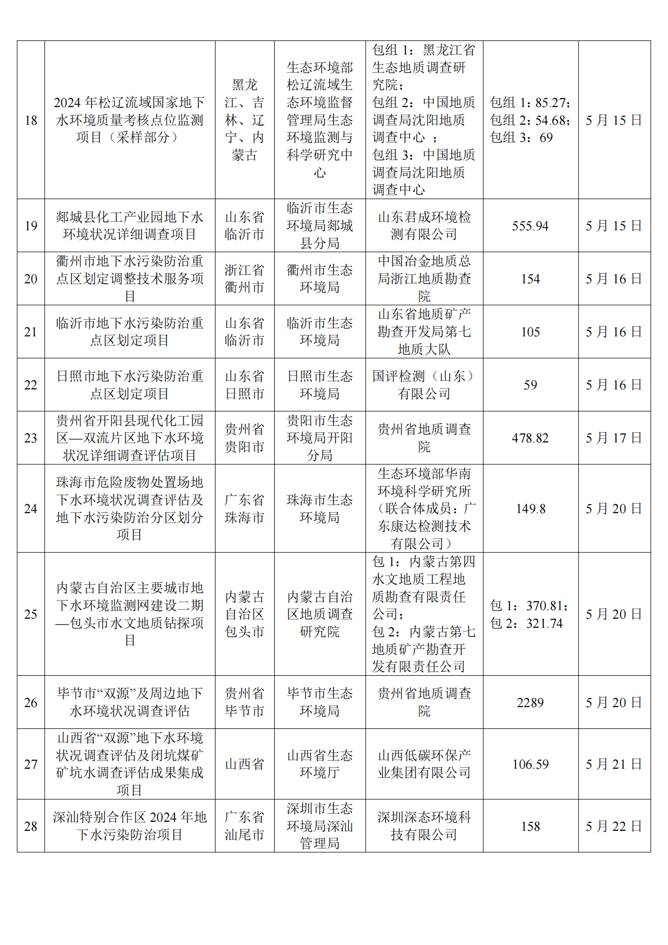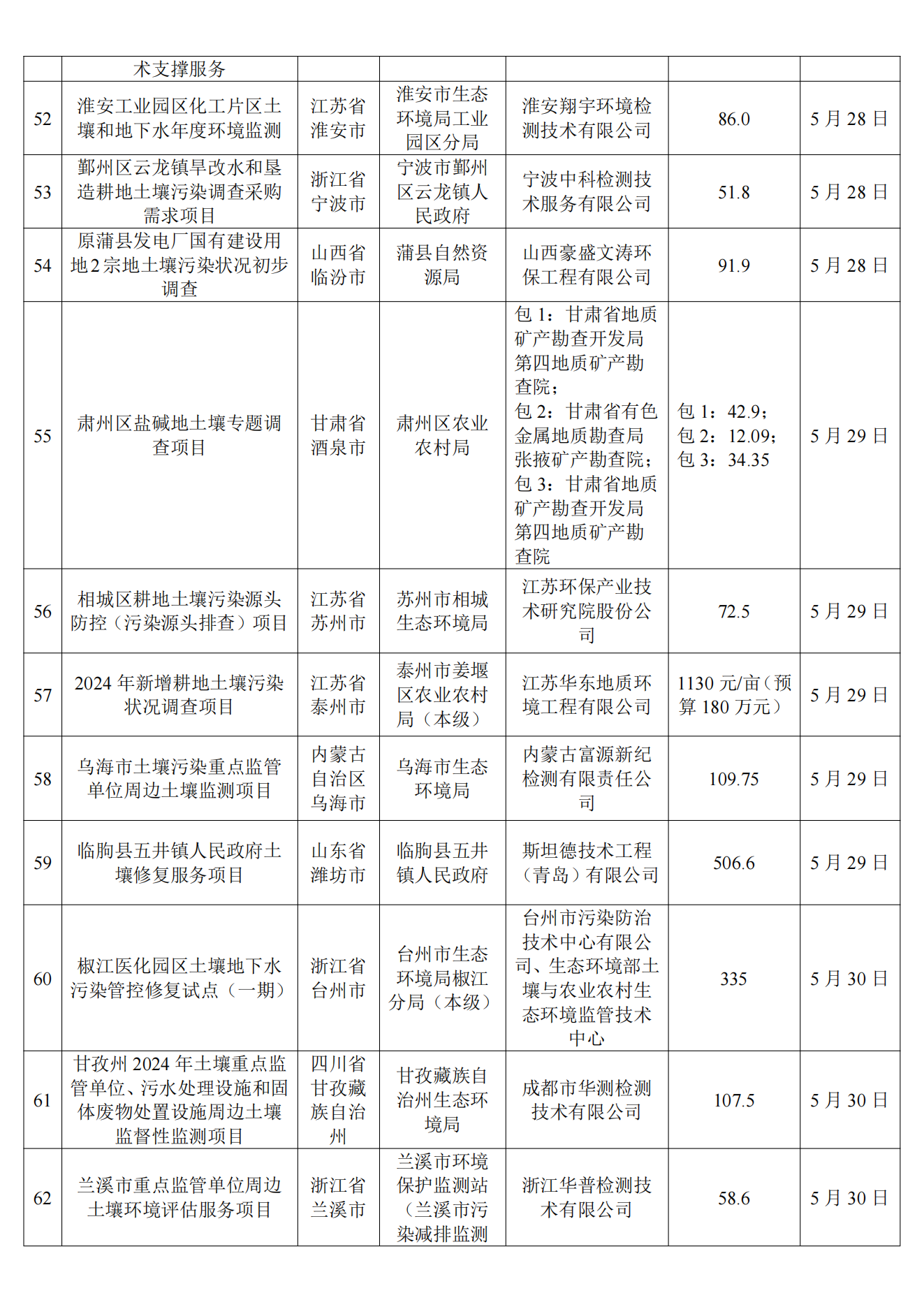 5月土壤、地下水环境调查评估与修复项目招标及中标信息