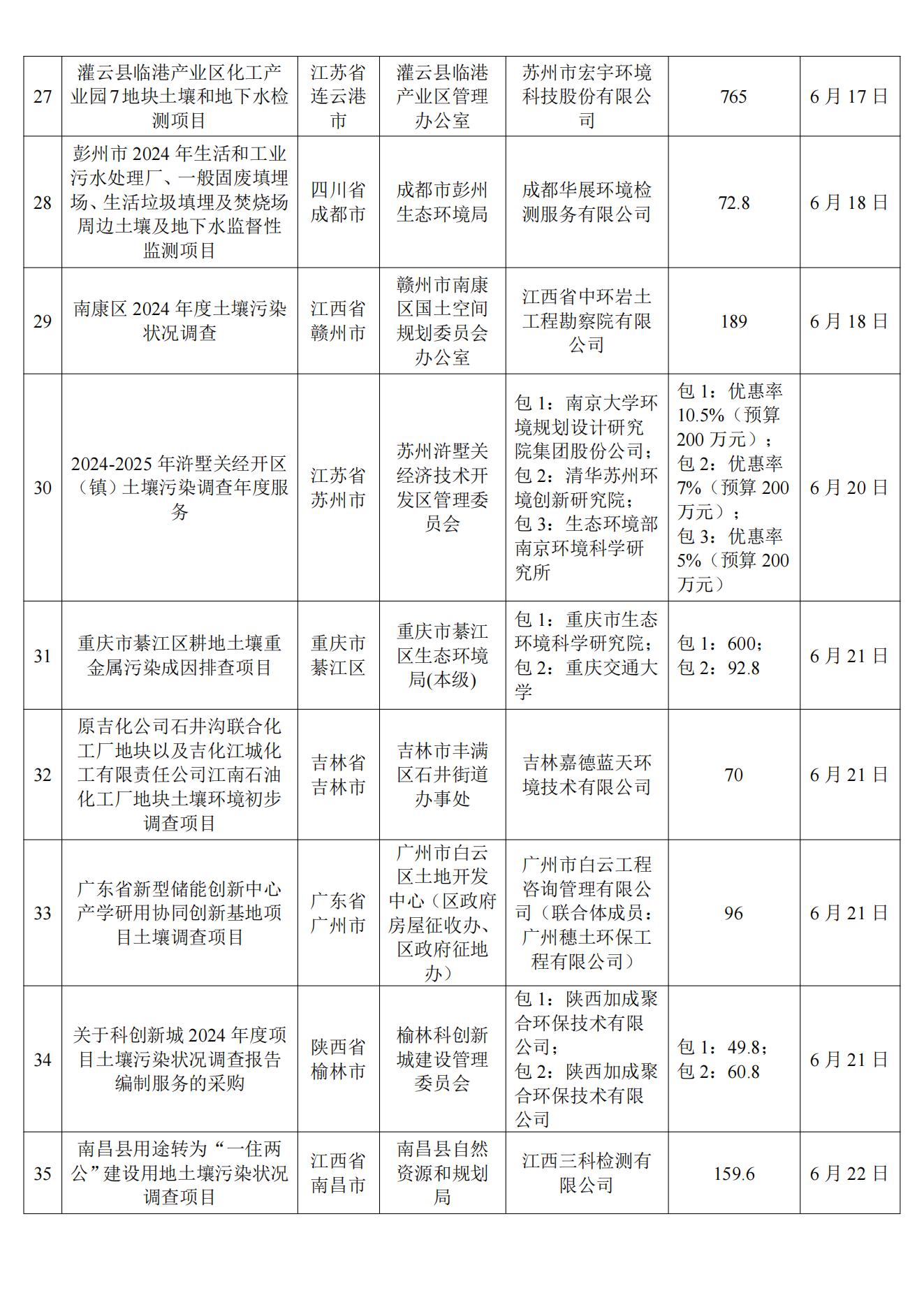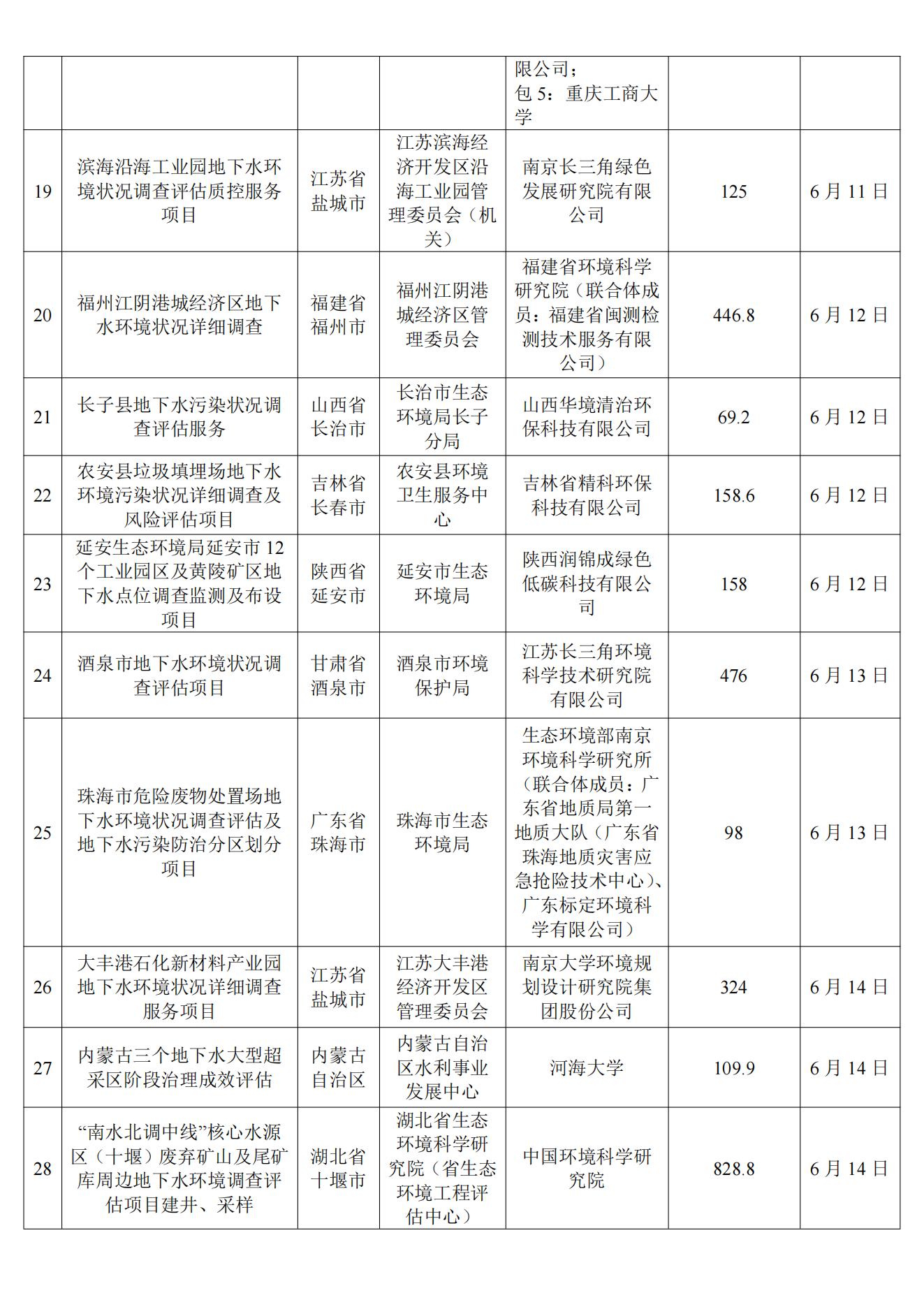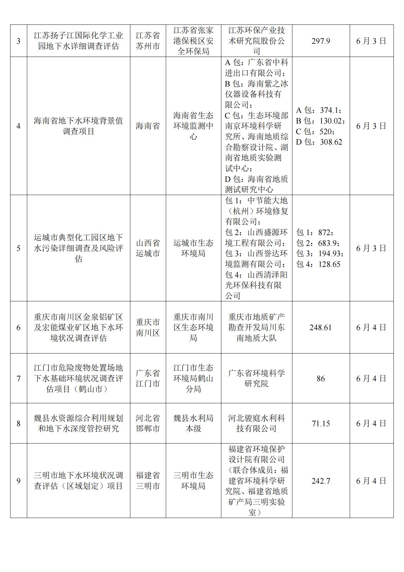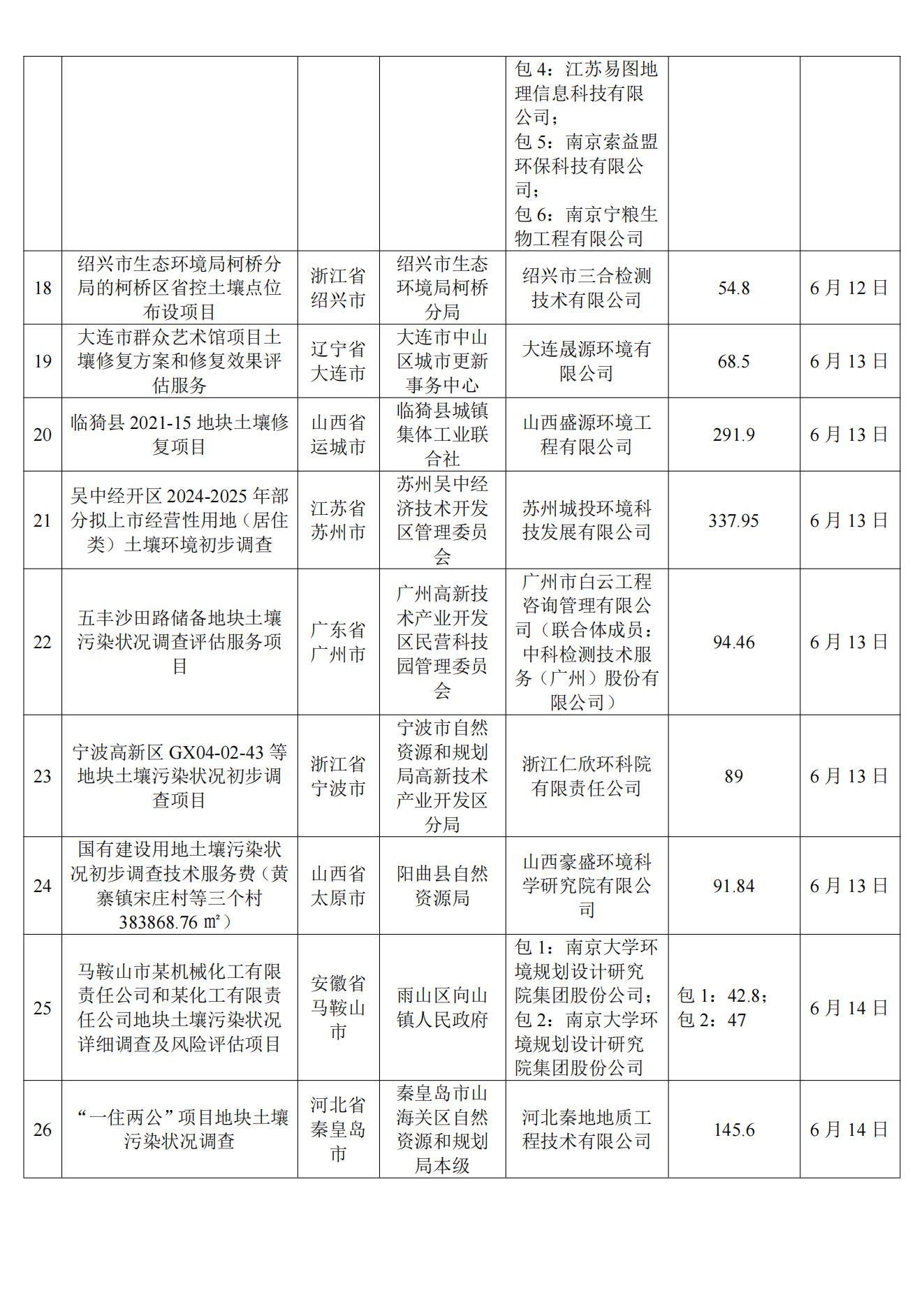 6月土壤、地下水环境调查评估与修复项目招标及中标信息