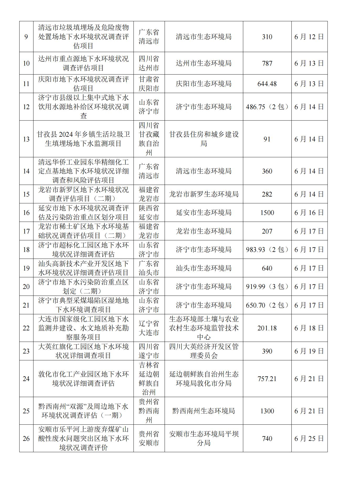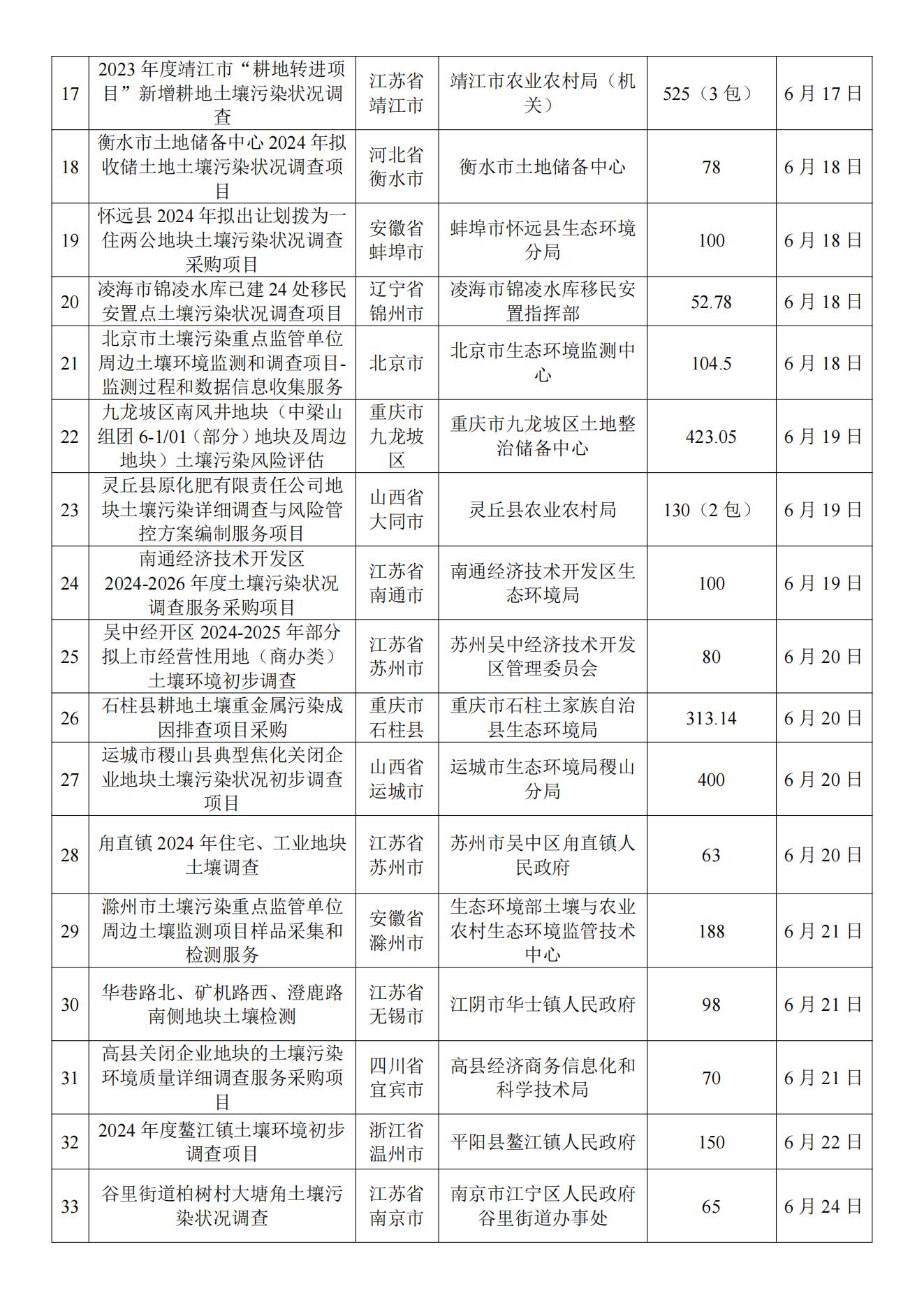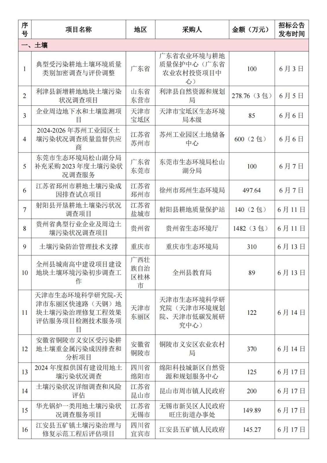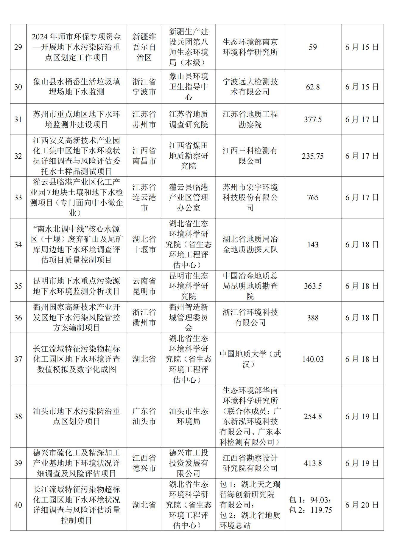 6月土壤、地下水环境调查评估与修复项目招标及中标信息