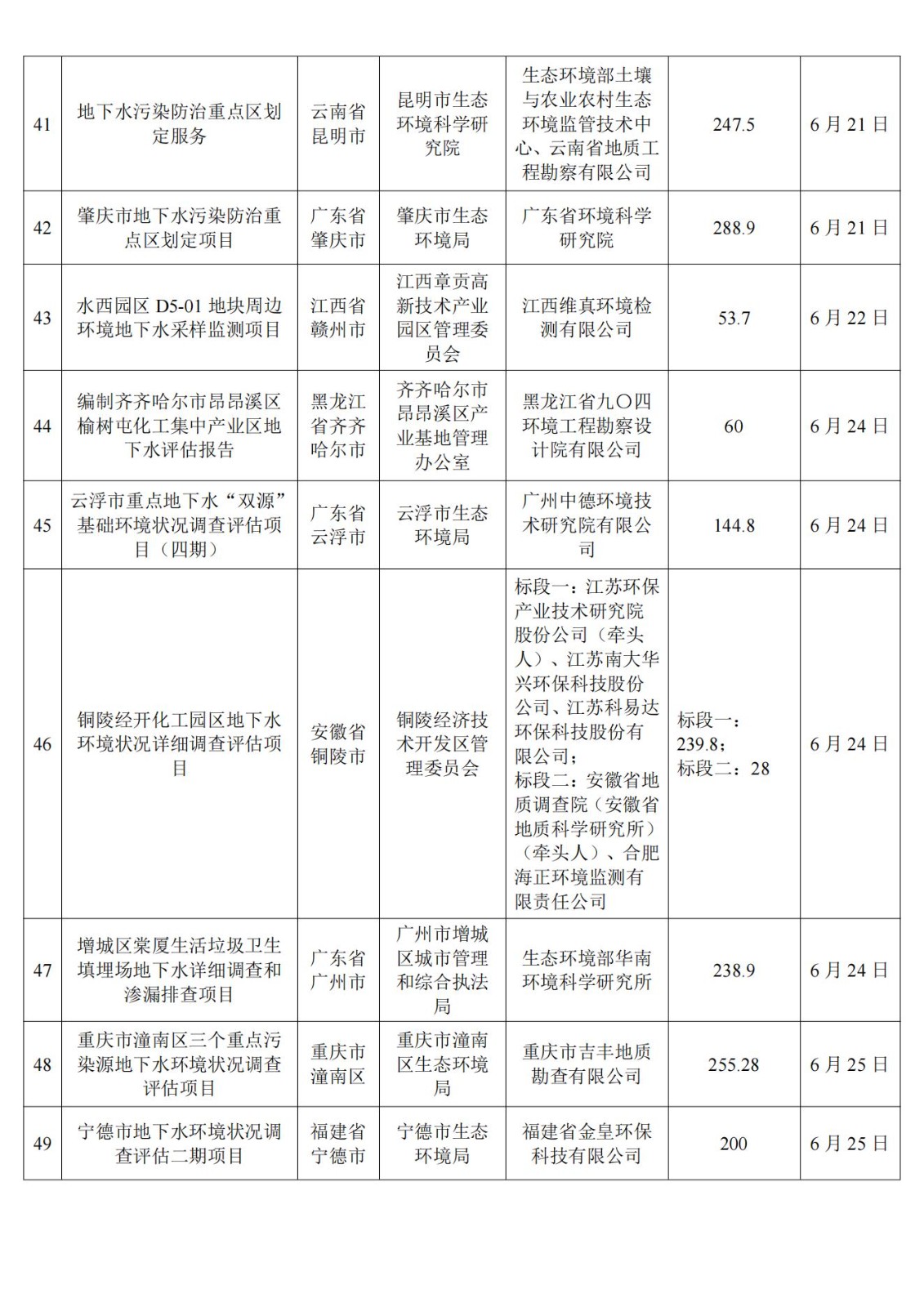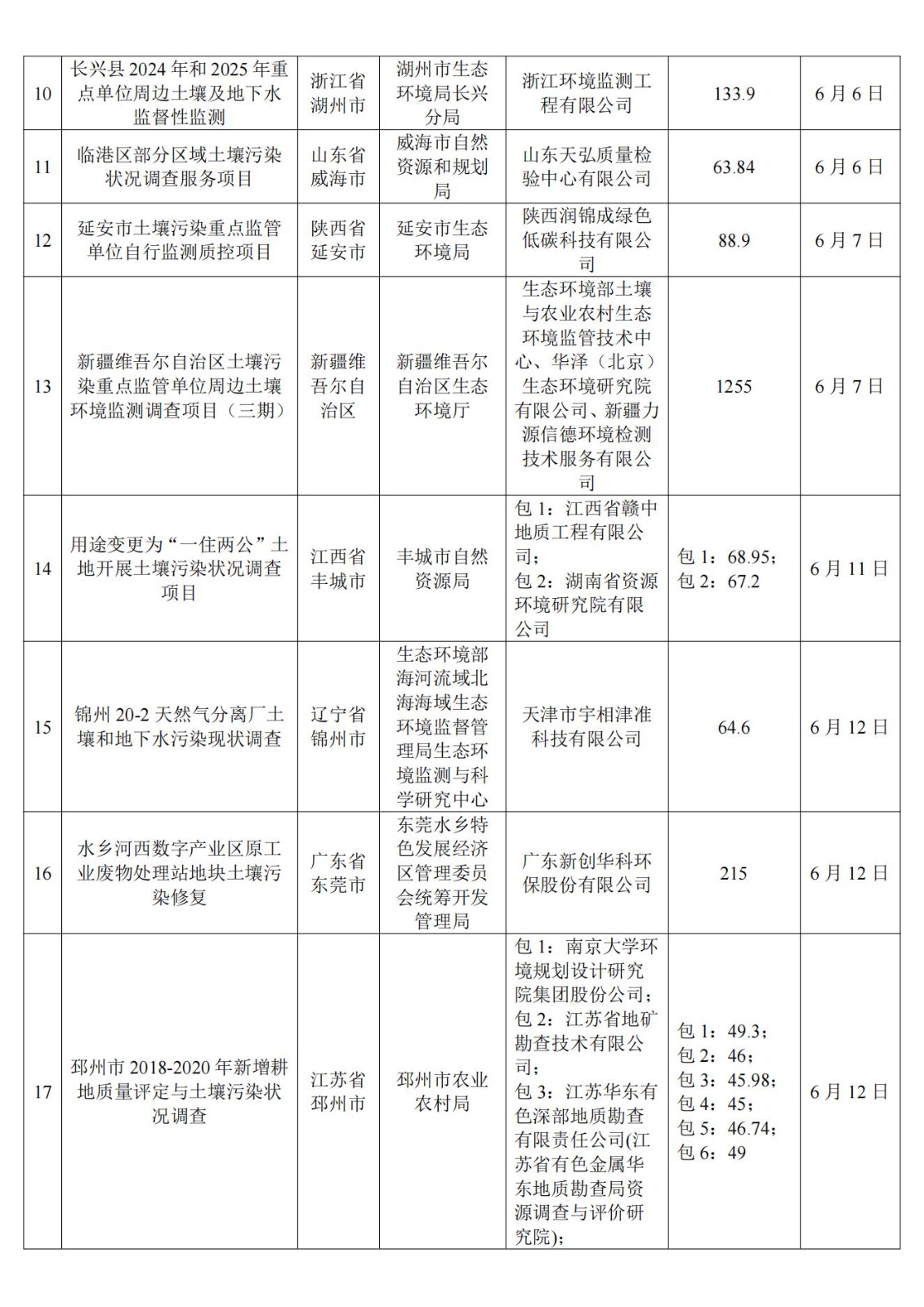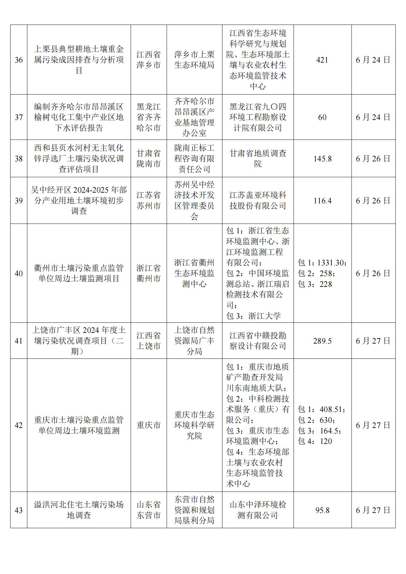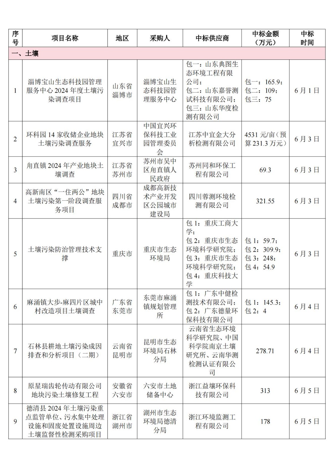 6月土壤、地下水环境调查评估与修复项目招标及中标信息