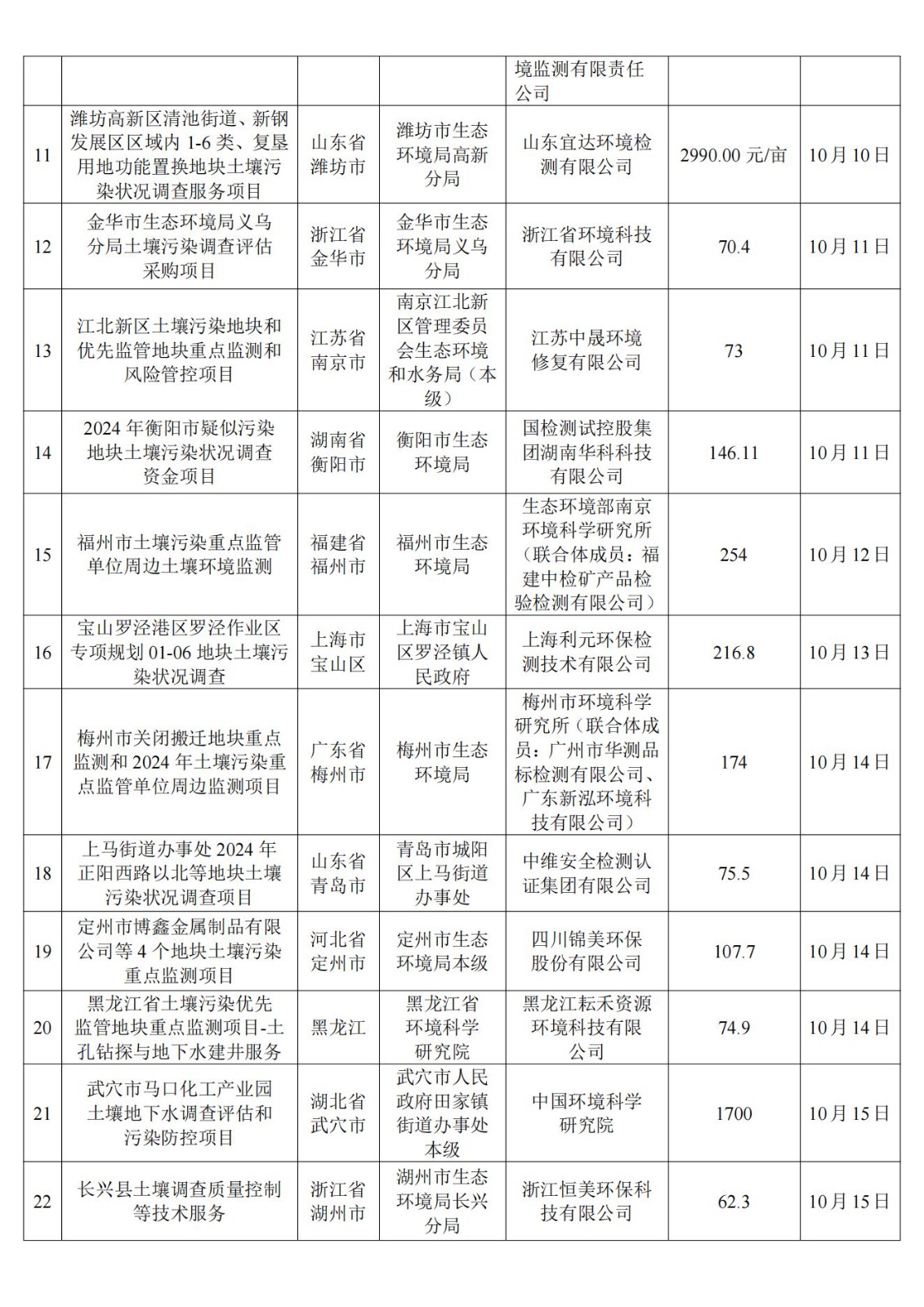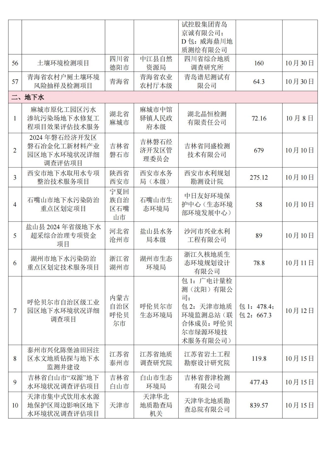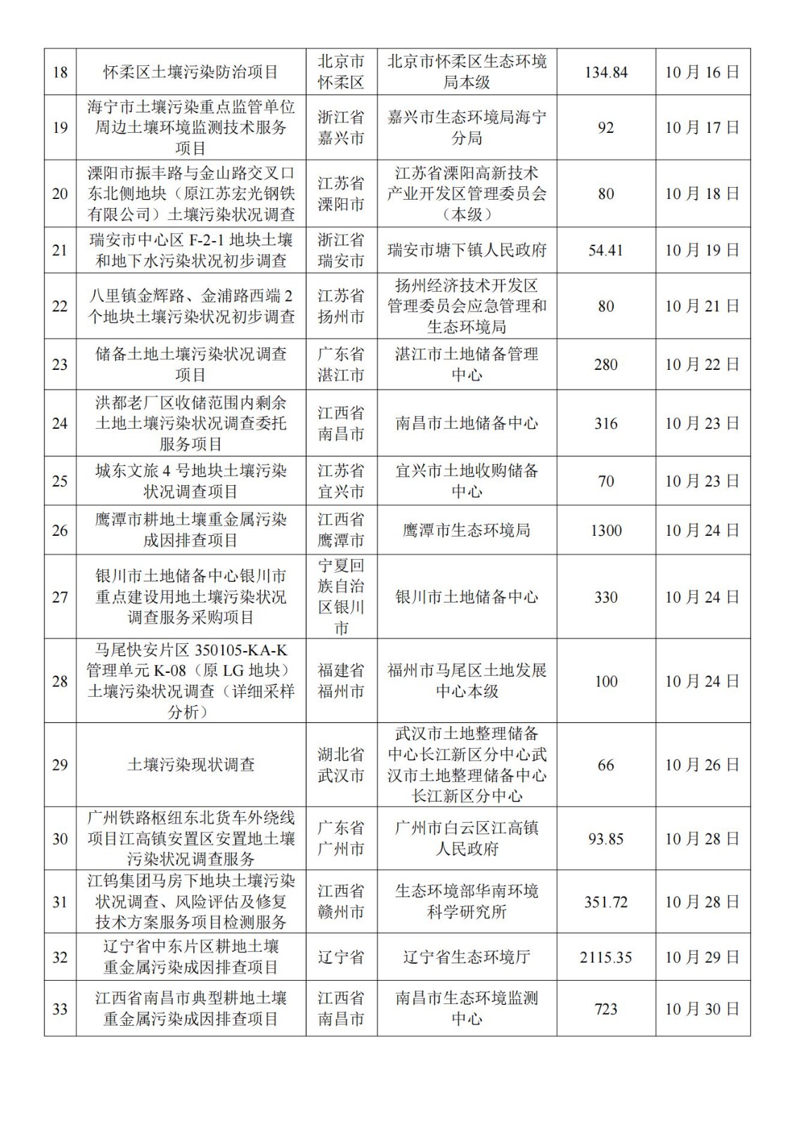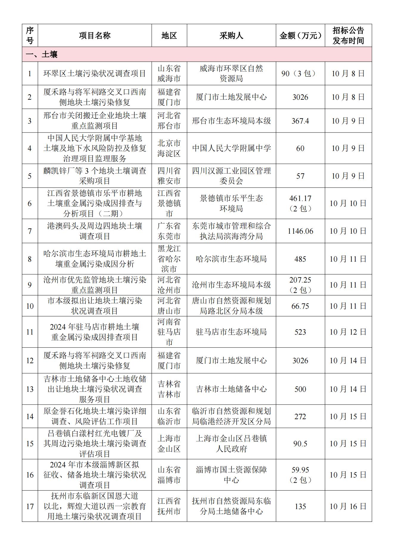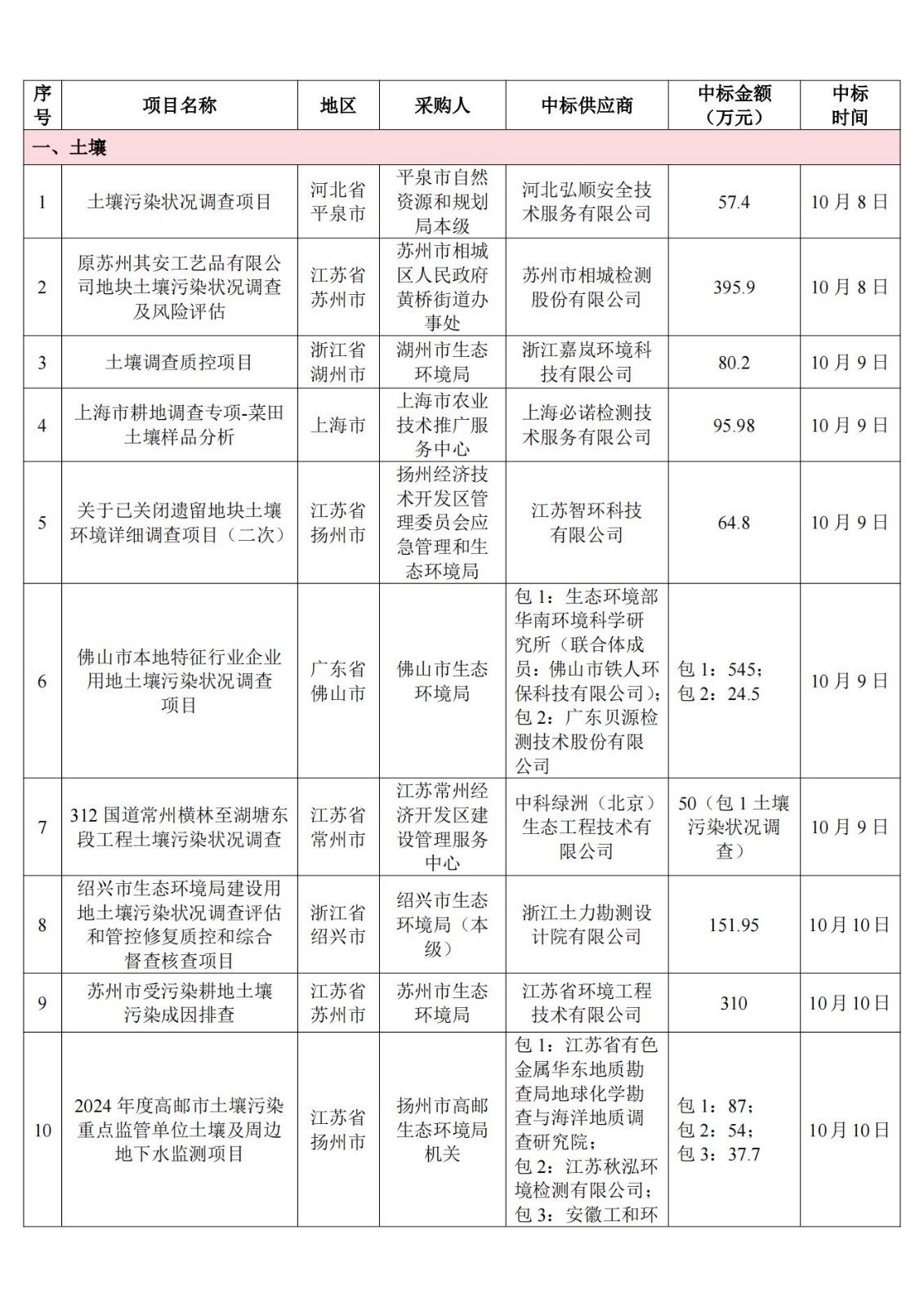 10月土壤、地下水环境调查评估与修复项目招标及中标信息