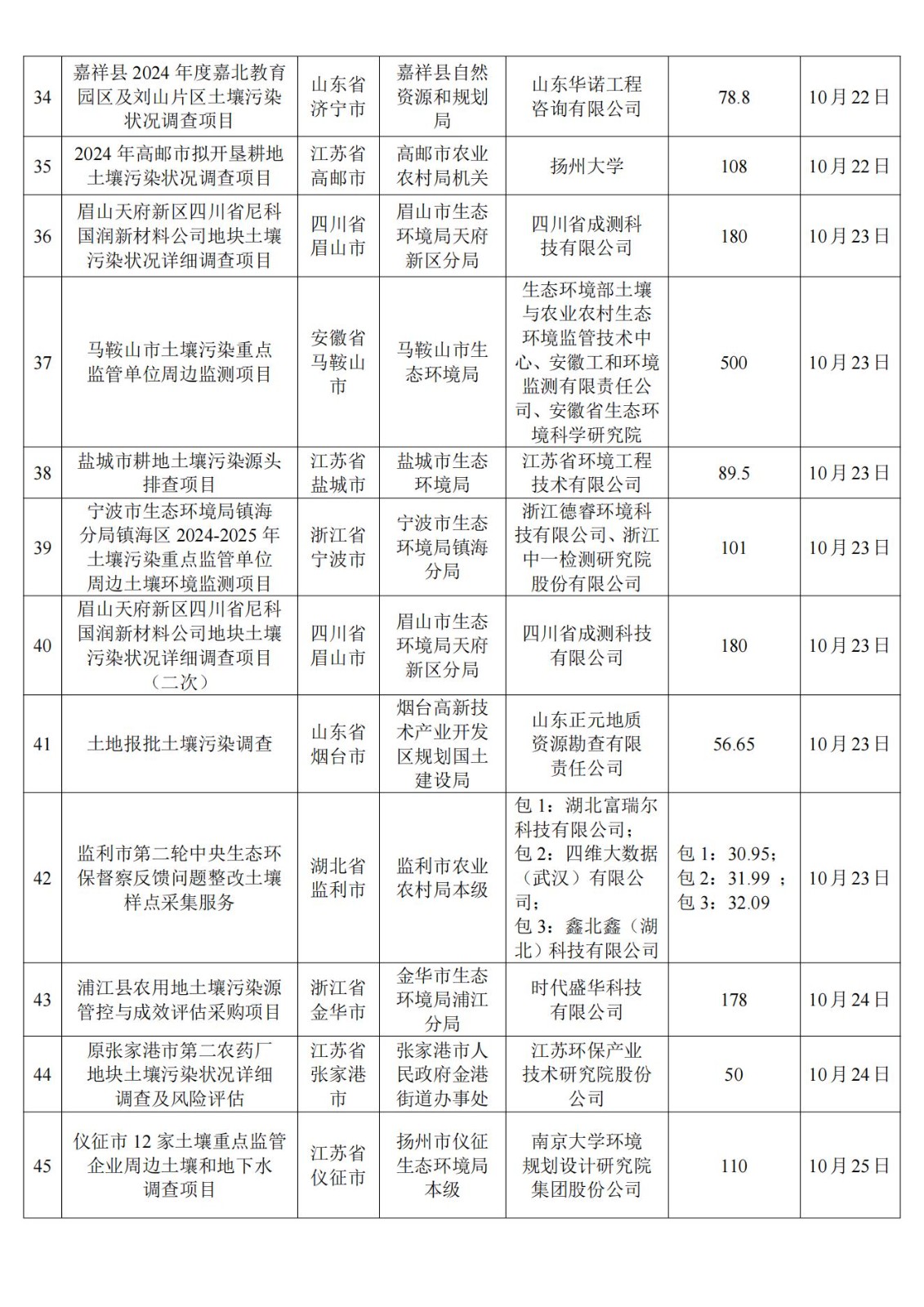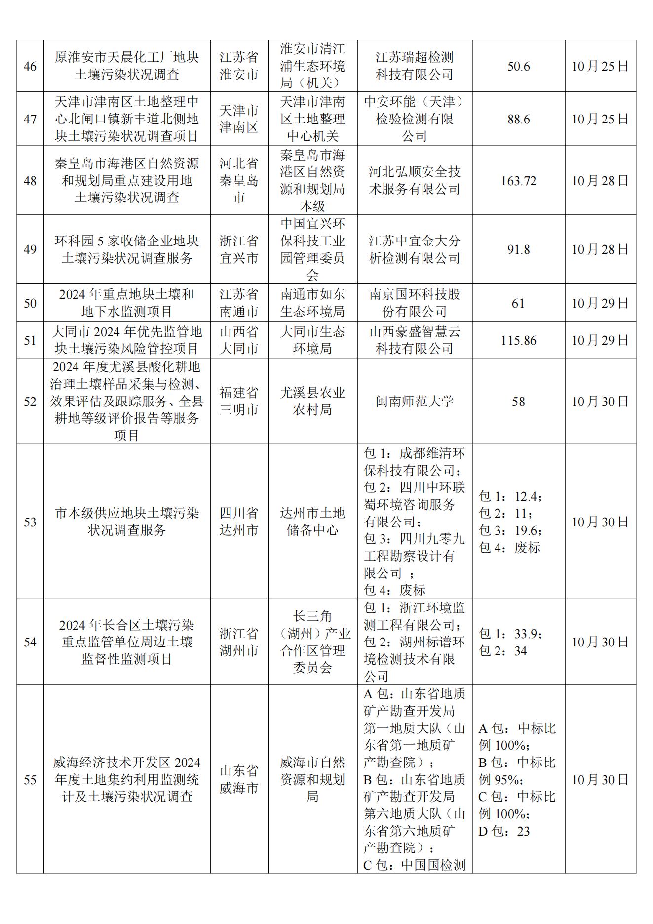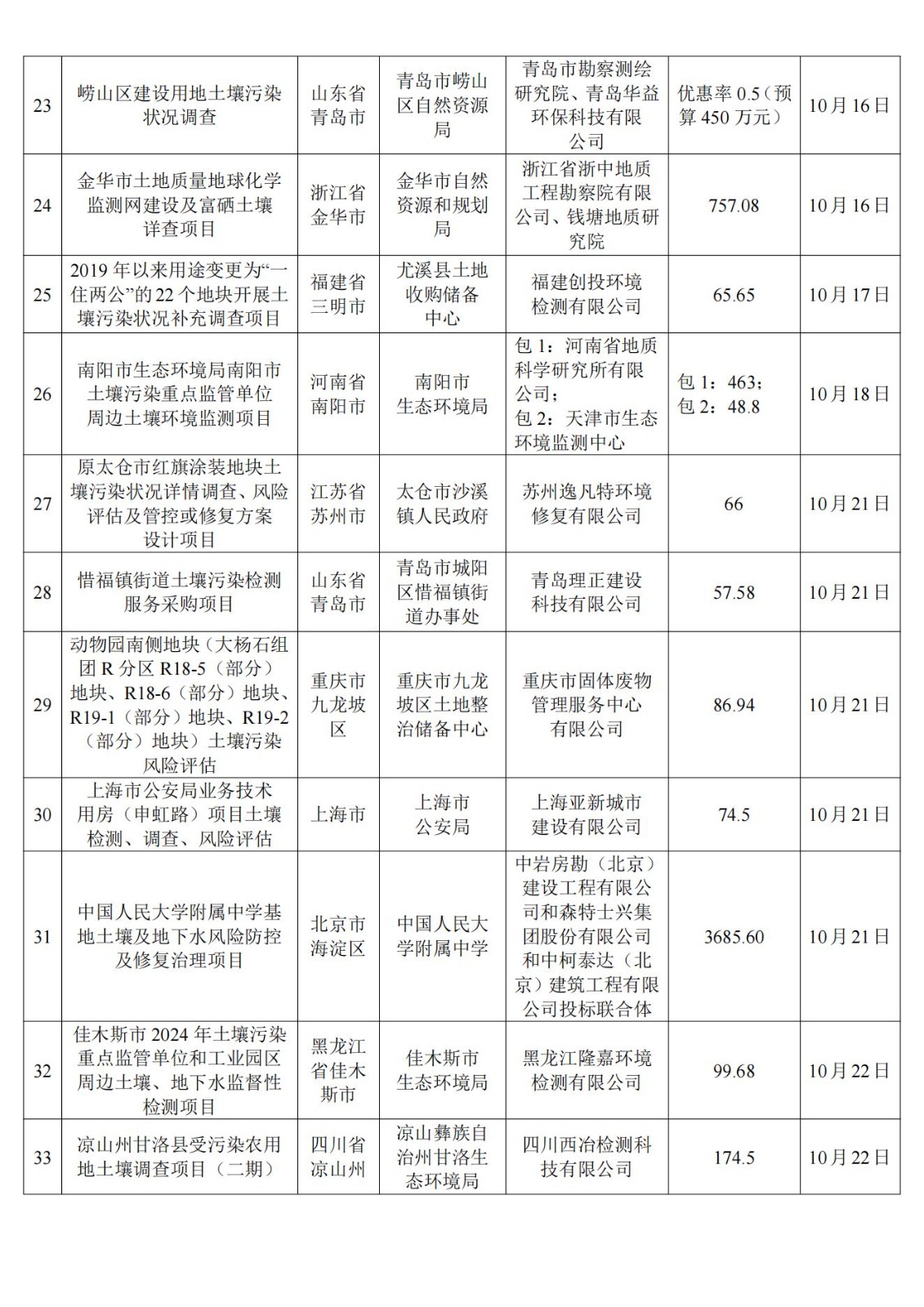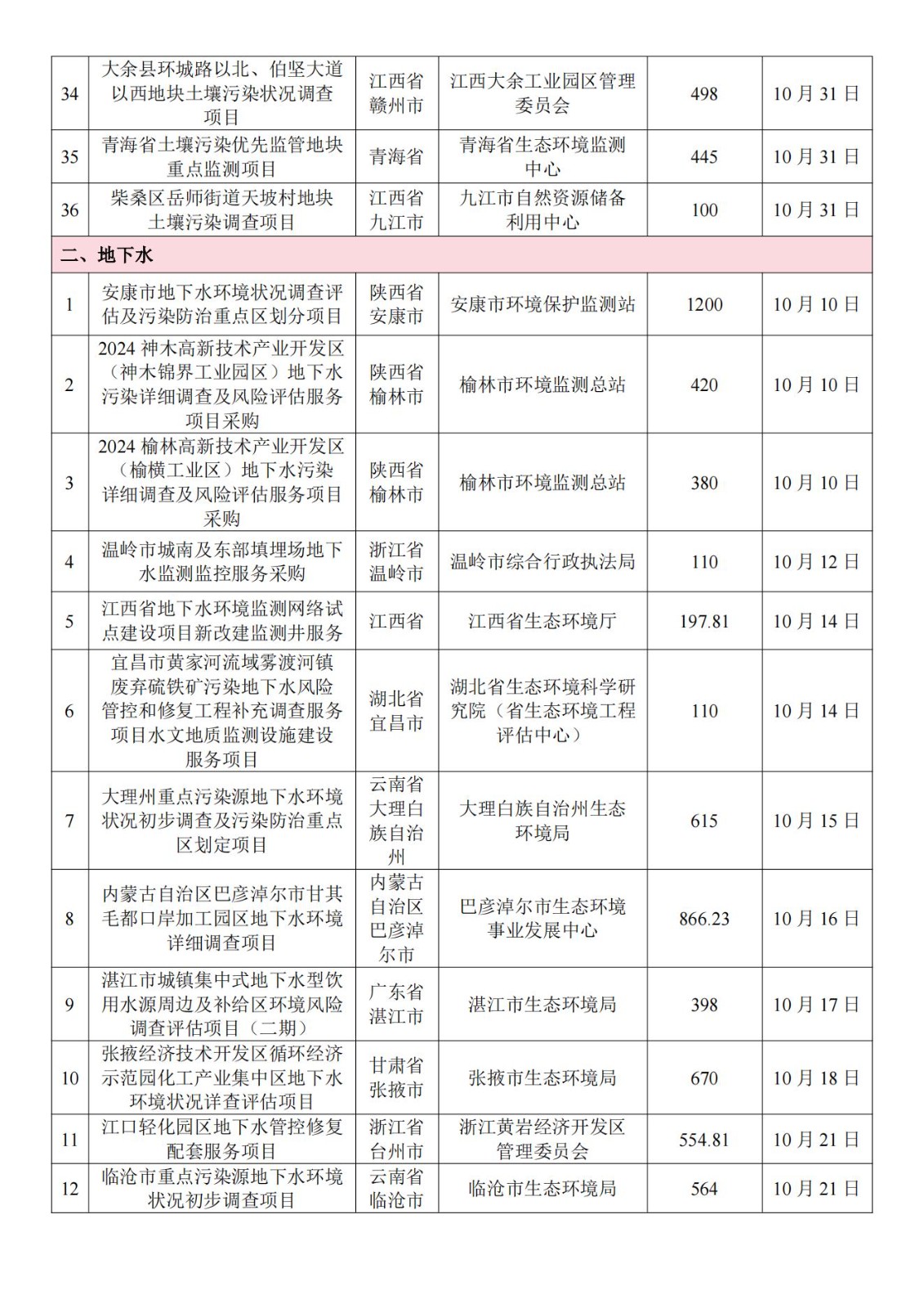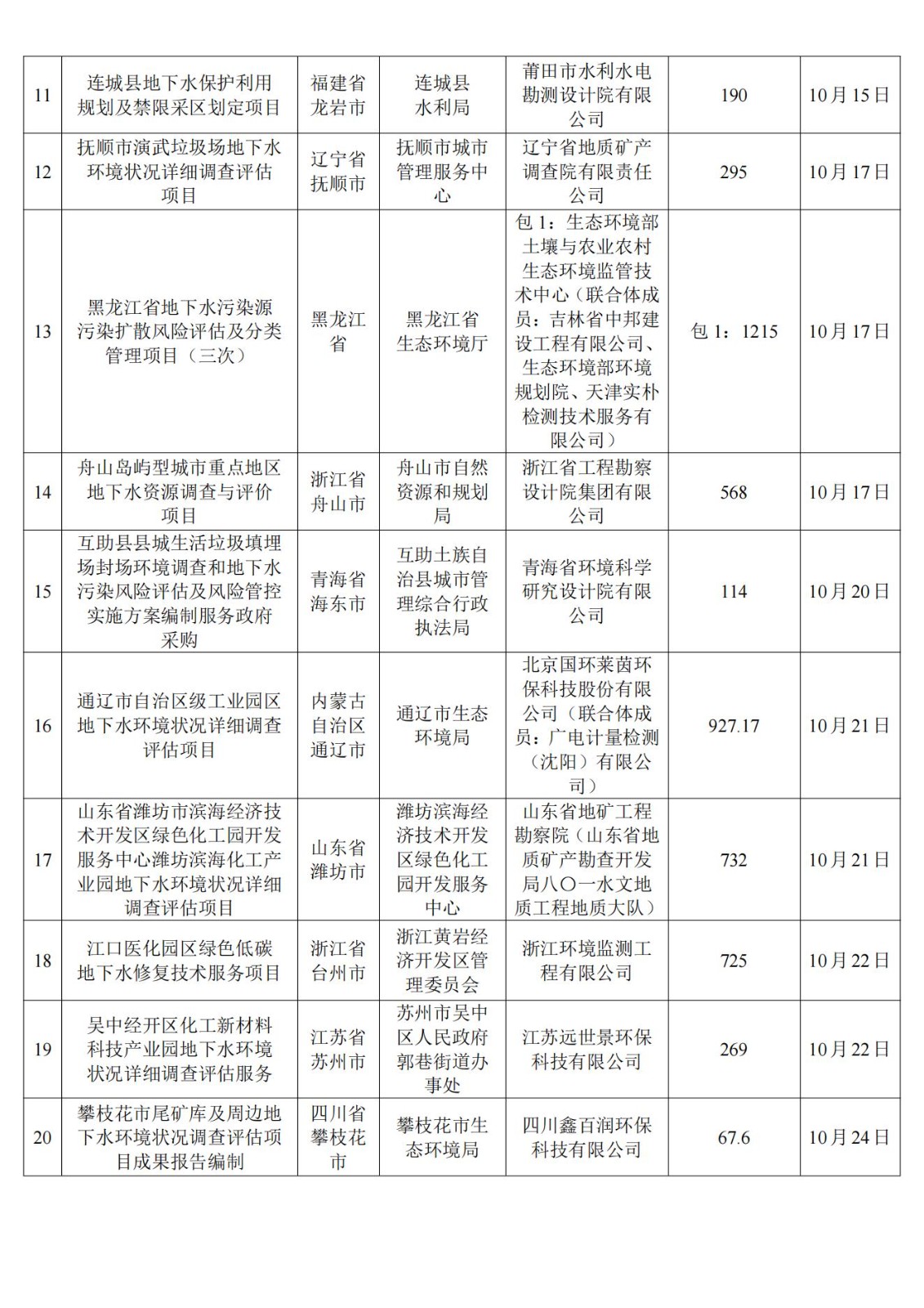 10月土壤、地下水环境调查评估与修复项目招标及中标信息