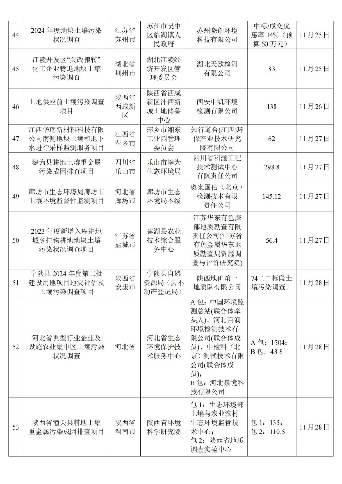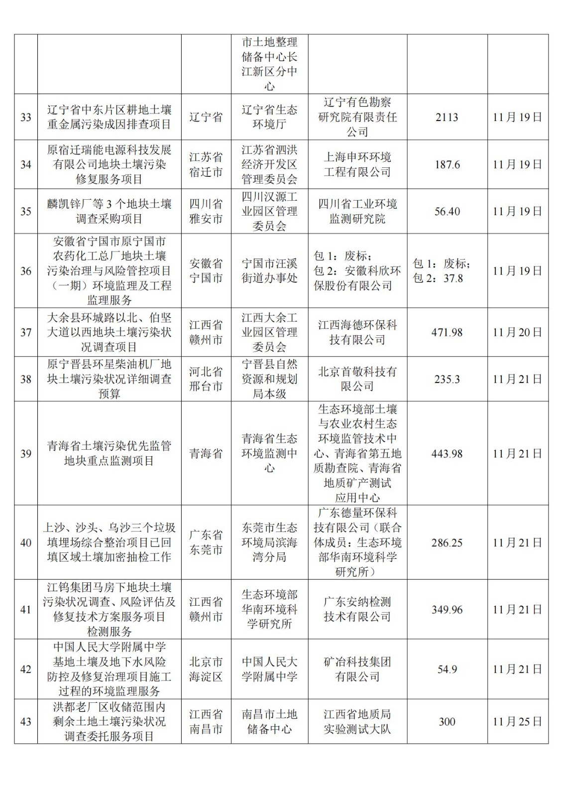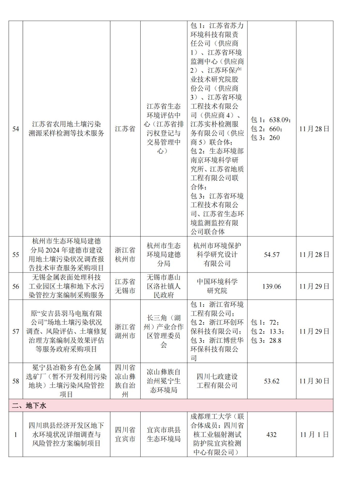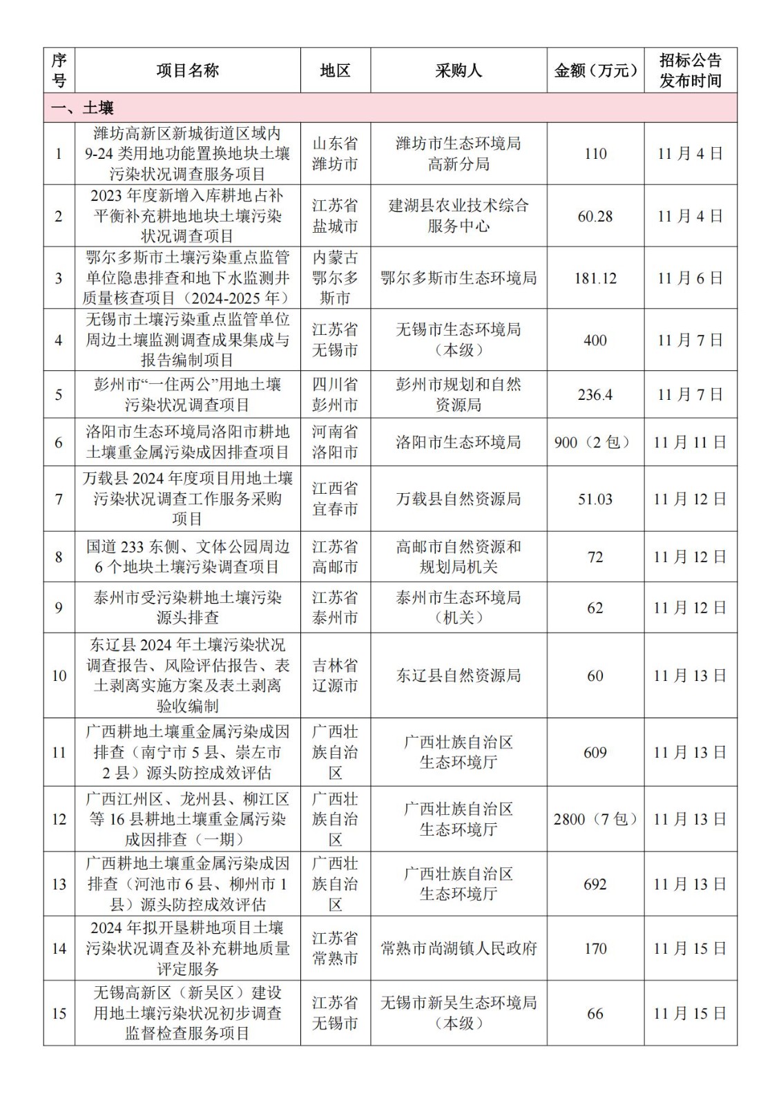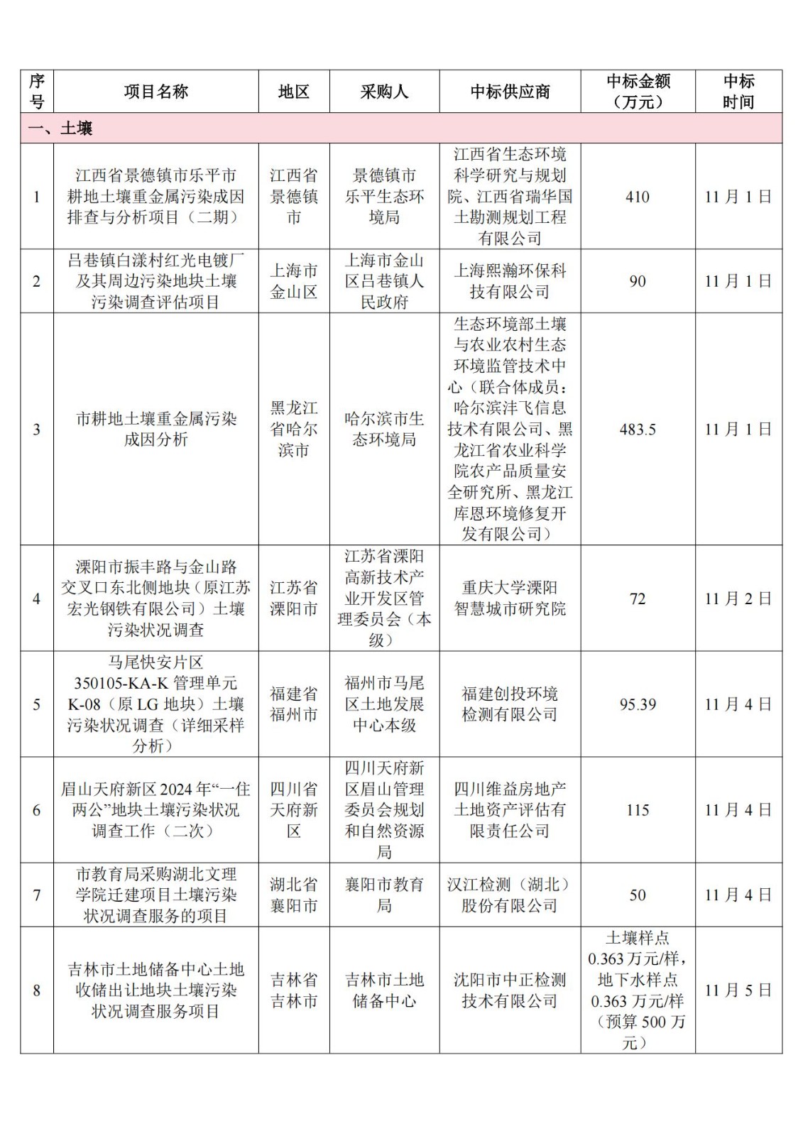 11月土壤、地下水环境调查评估与修复项目招标及中标信息