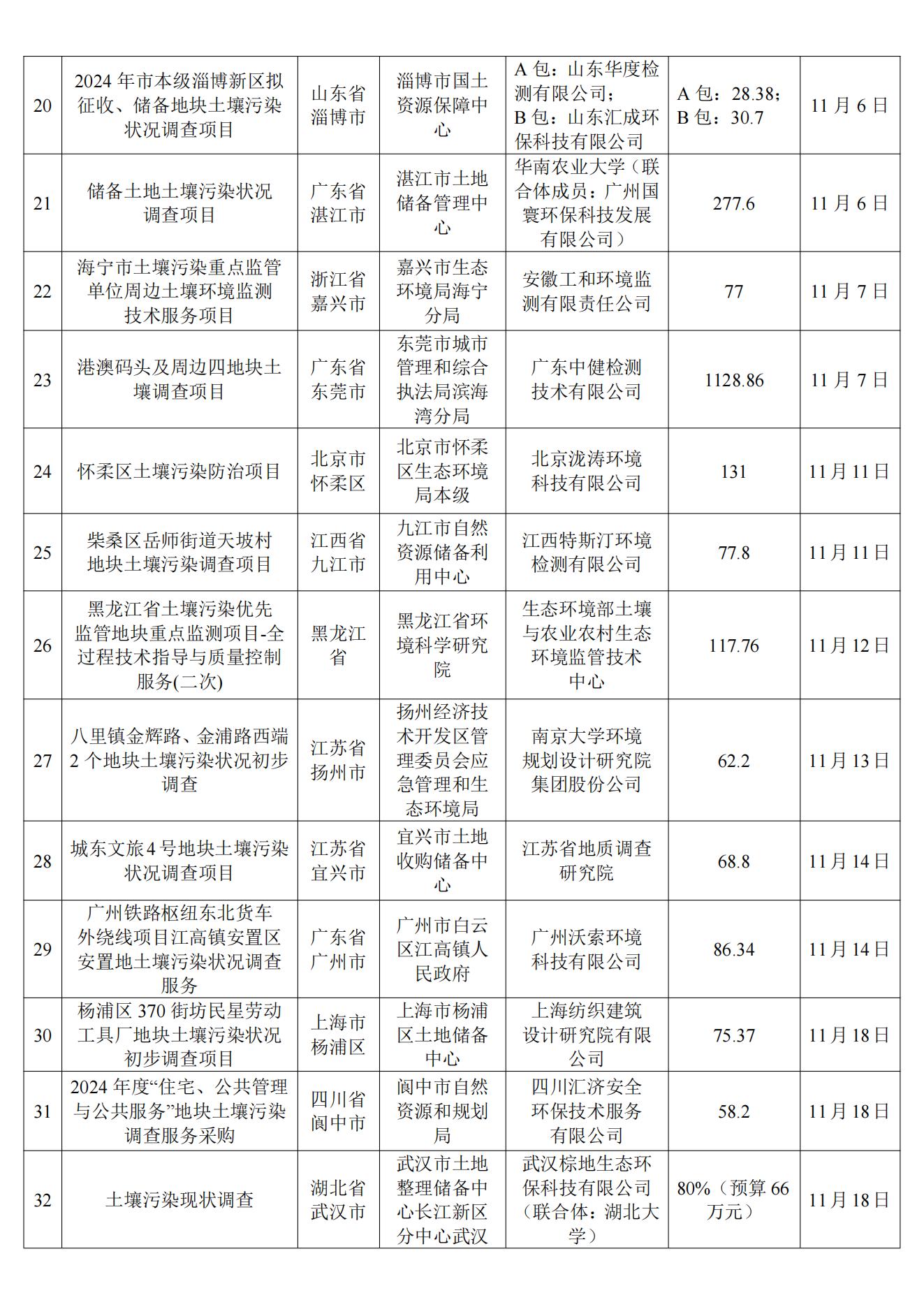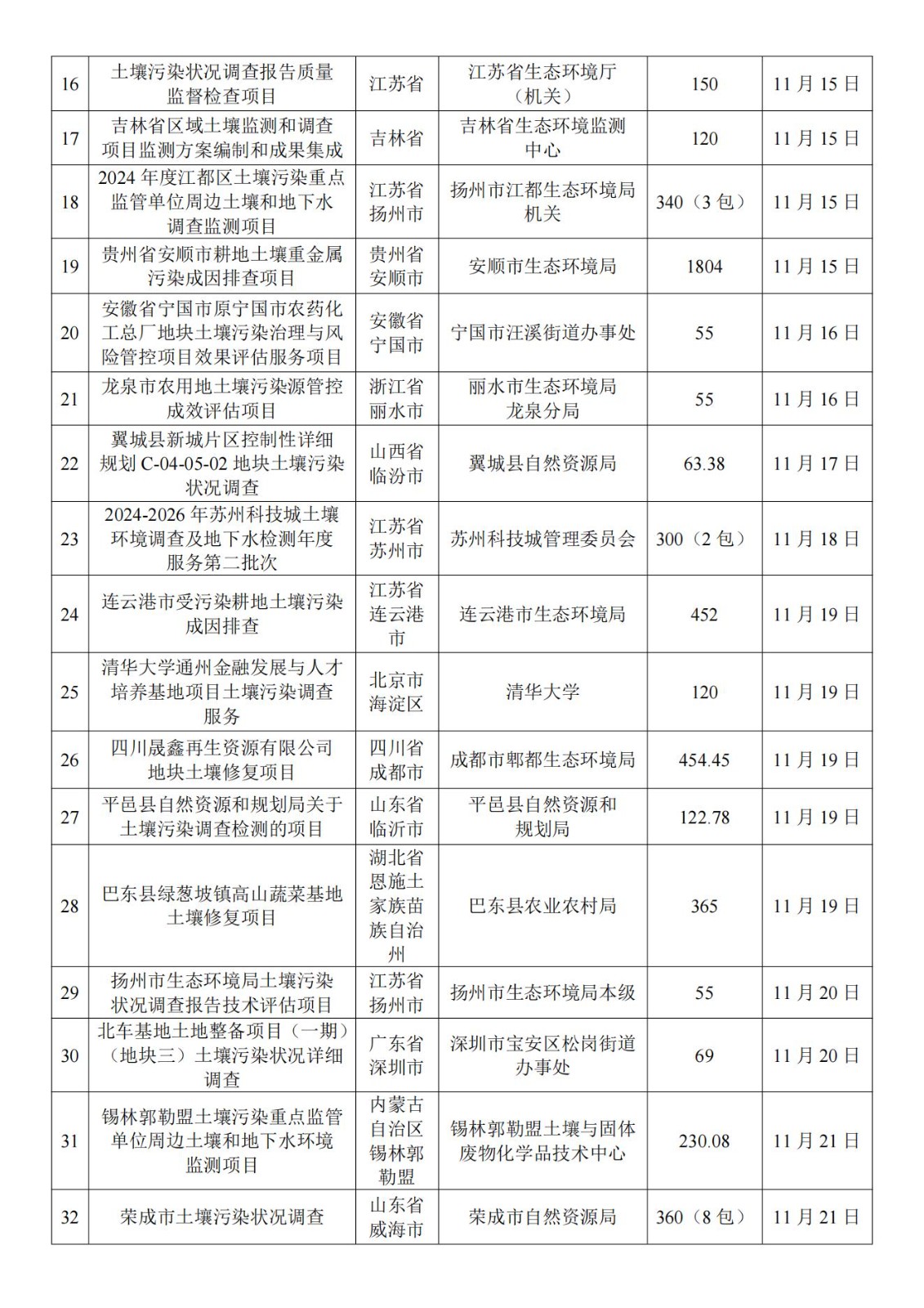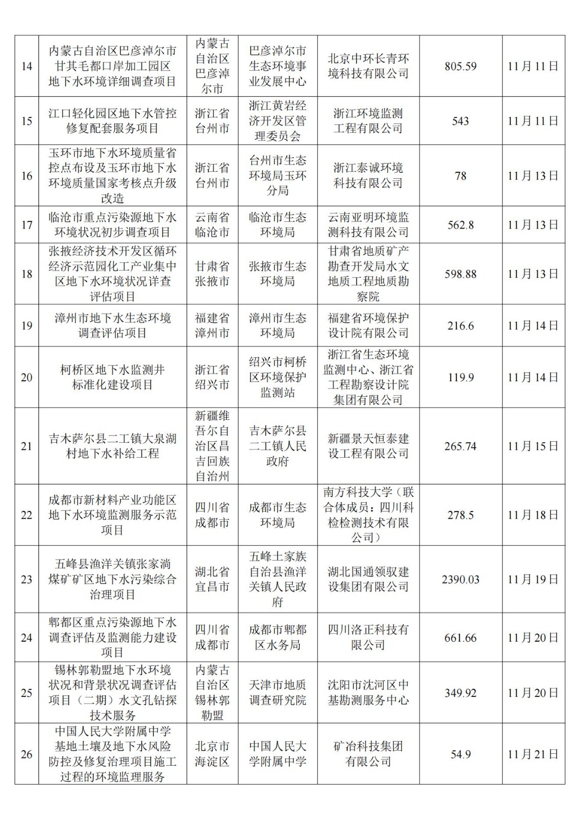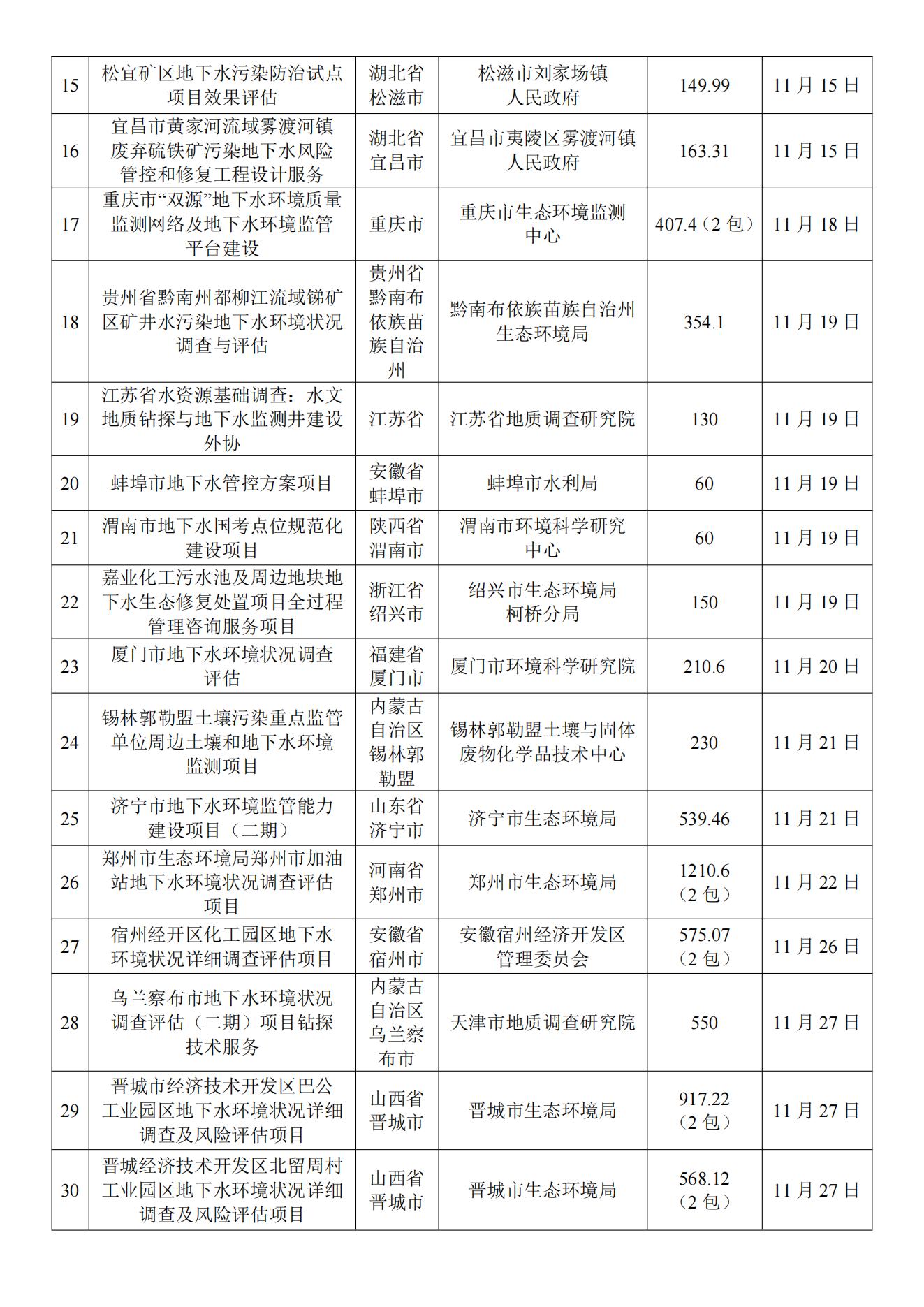 11月土壤、地下水环境调查评估与修复项目招标及中标信息