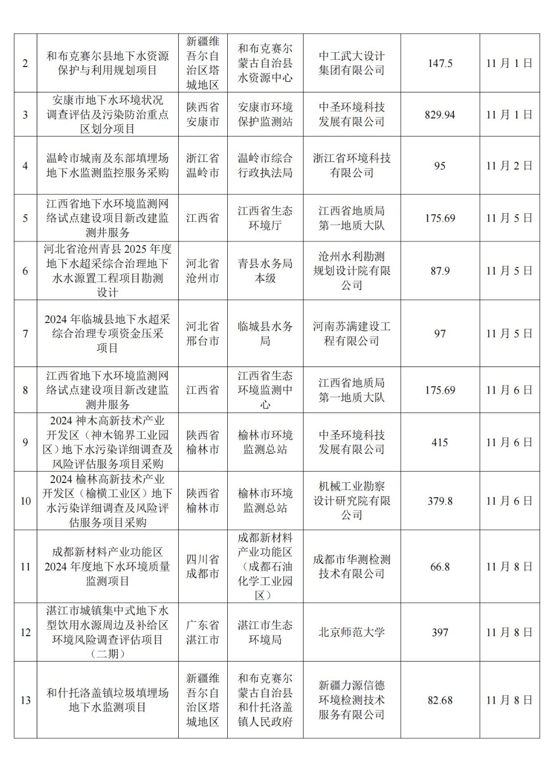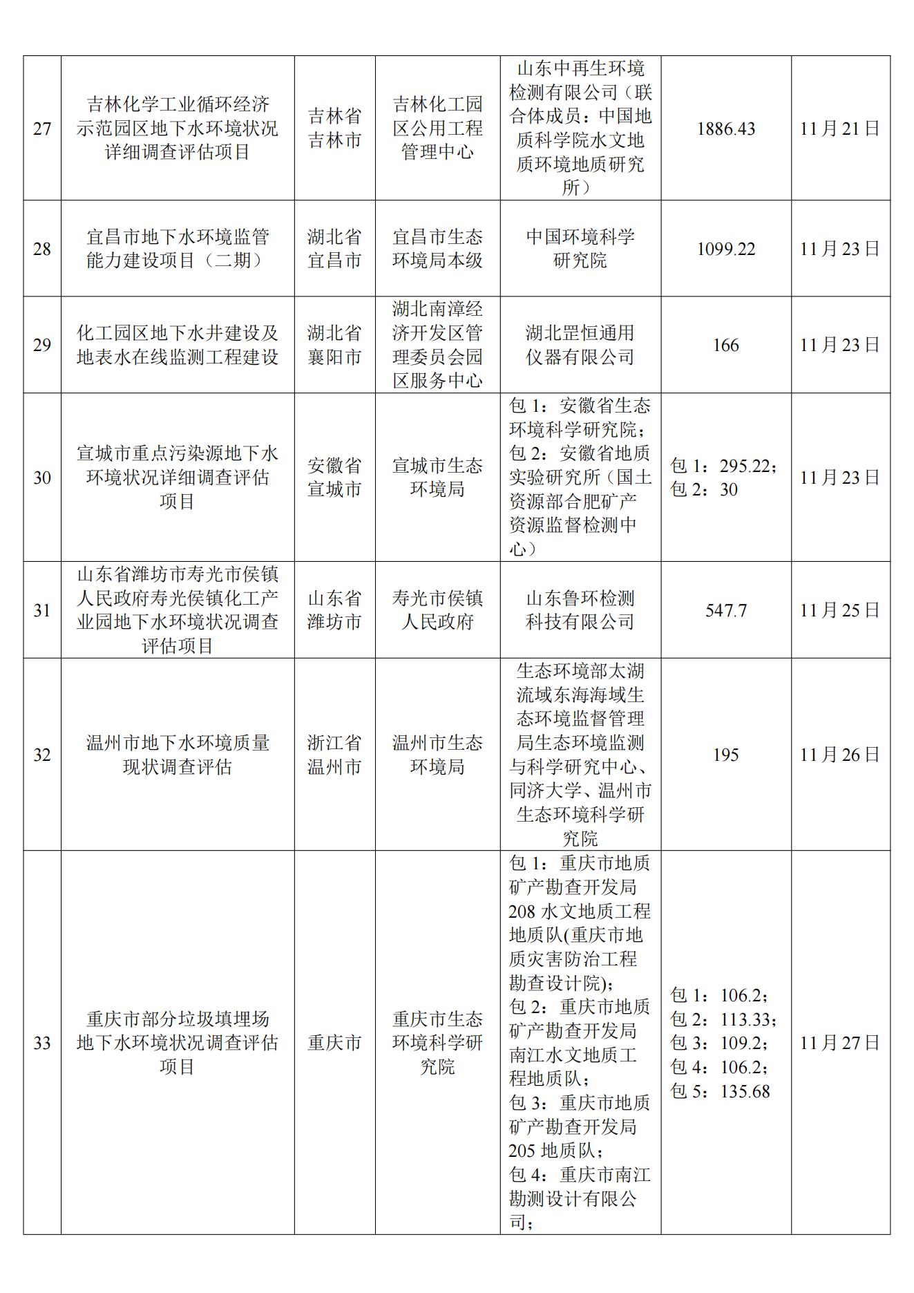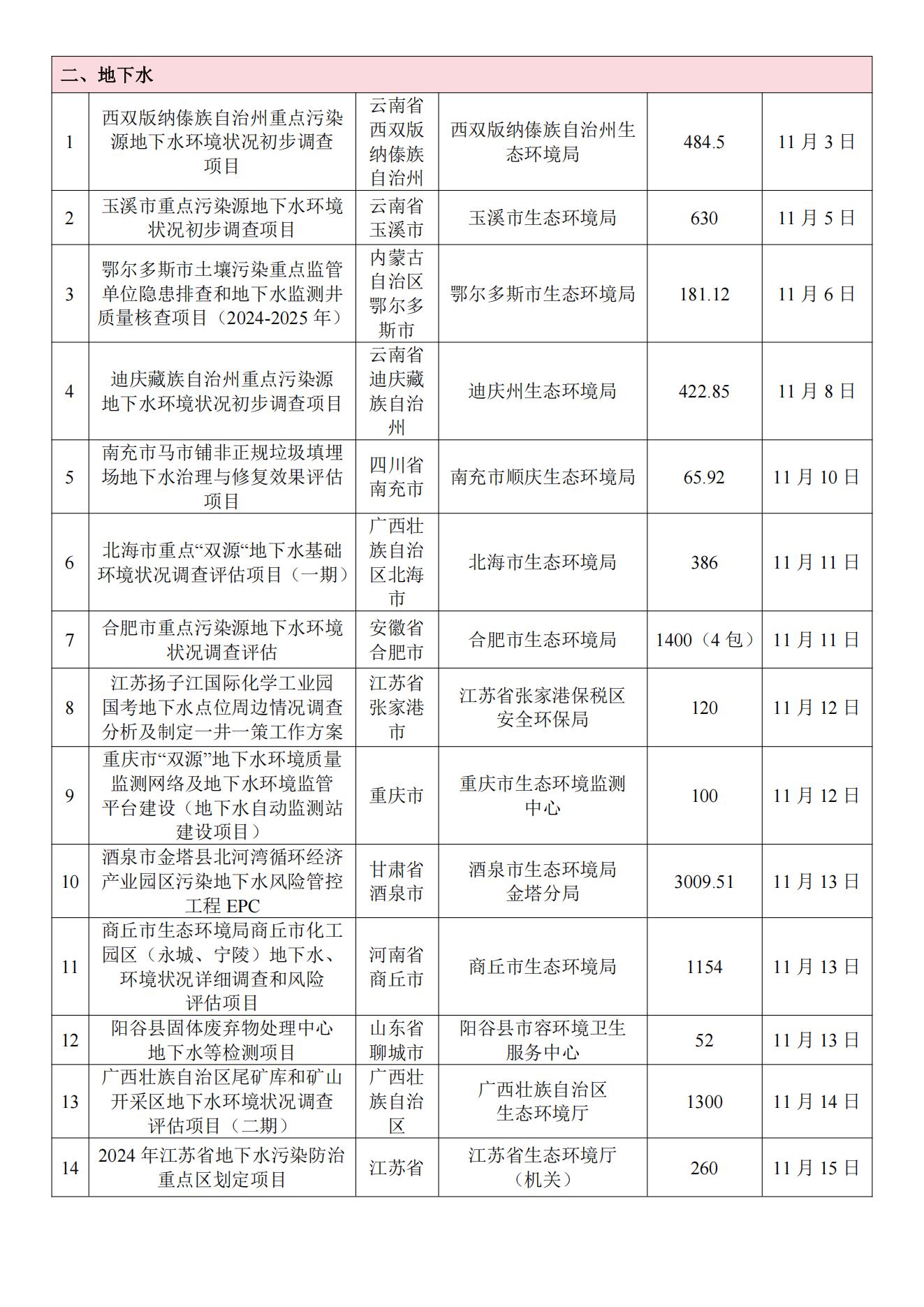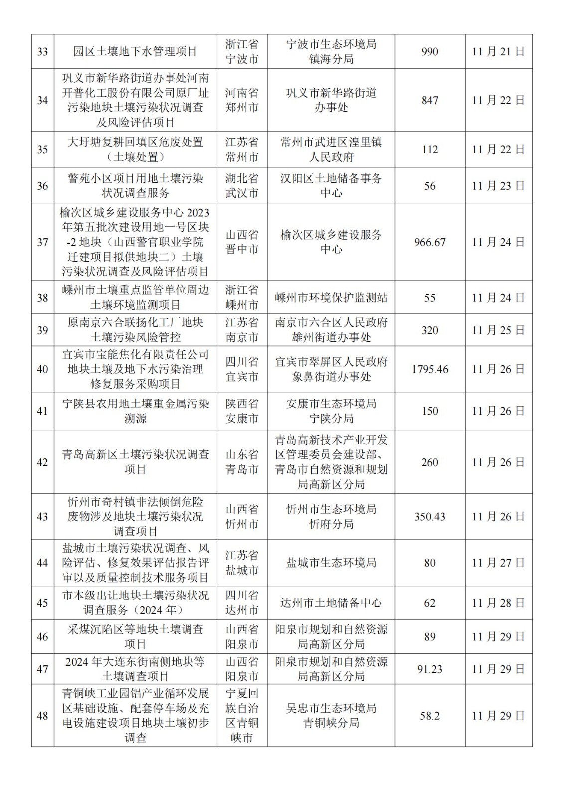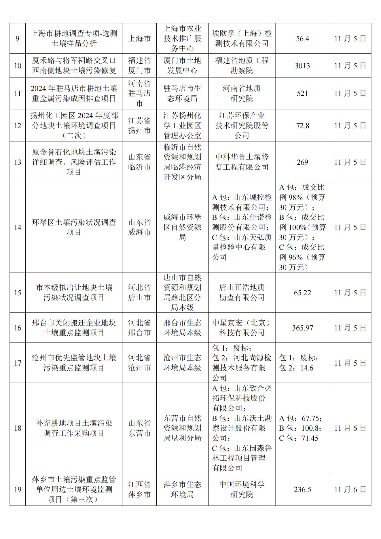 11月土壤、地下水环境调查评估与修复项目招标及中标信息