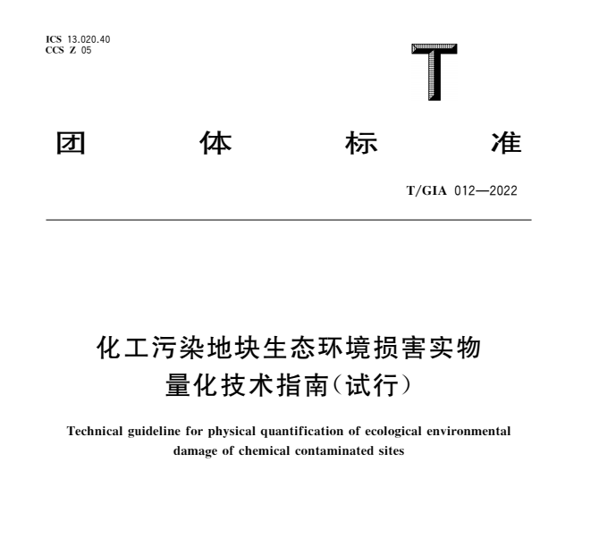 • 《化工污染地块生态环境损害实物量化技术指南(试行)》 标准编制